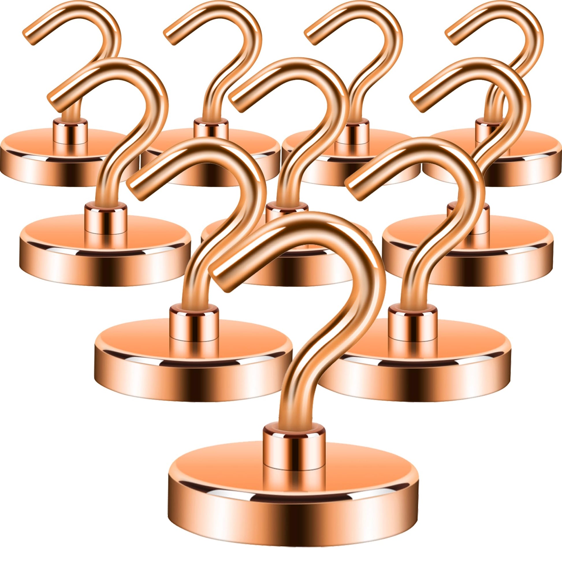 Neosmuk Magnetic Hooks,30lb+ Heavy Duty Earth Magnets with Hook for Refrigerator, Extra Strong Cruise Hook for Hanging, Magnetic Hanger for Cabins, Grill (Silver White, Pack of 10)