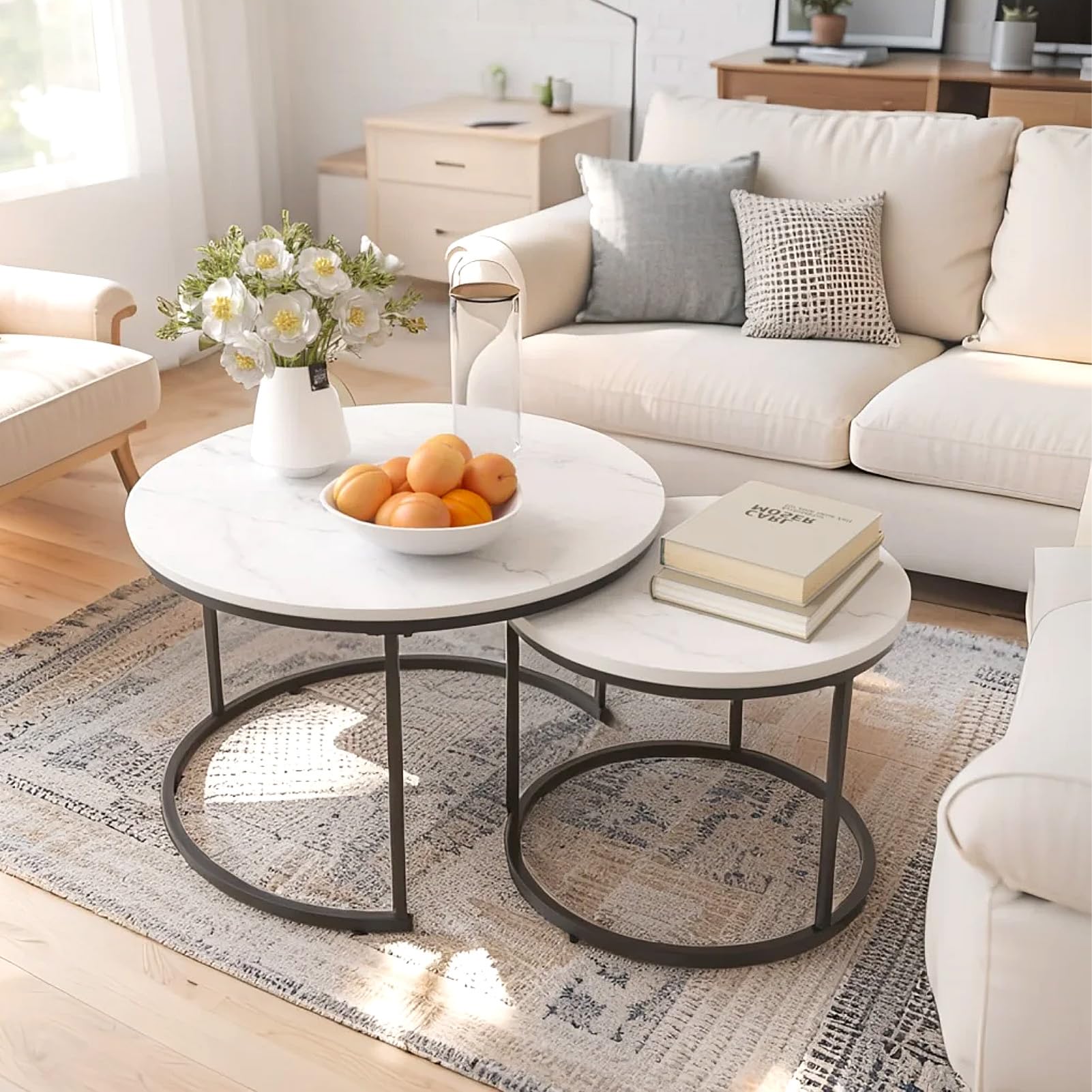 - Nesting Design for Space Efficiency: Includes 2 round tables in different sizes that can be used separately as side tables or nested together for compact storage, ideal for small apartments, minimalist living rooms, or flexible layout needs