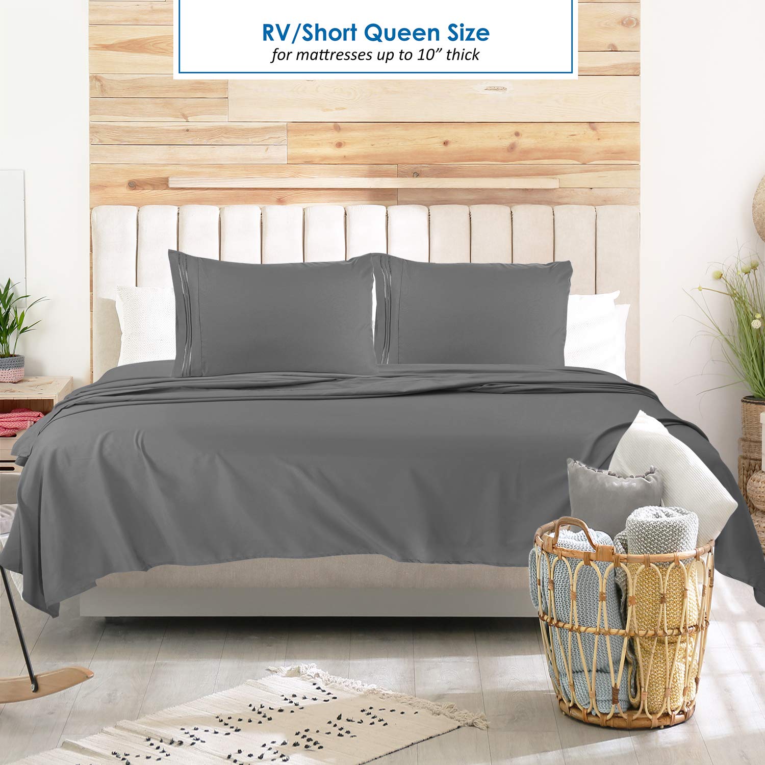Nestl Dark Grey Short Queen Sheets for RV, Hotel Luxury RV Queen Sheets Set, 6 Piece Fitted Bed Sheet Set and Pillowcases, Super Soft, Wrinkle-Free, and Breathable Camper Bedding