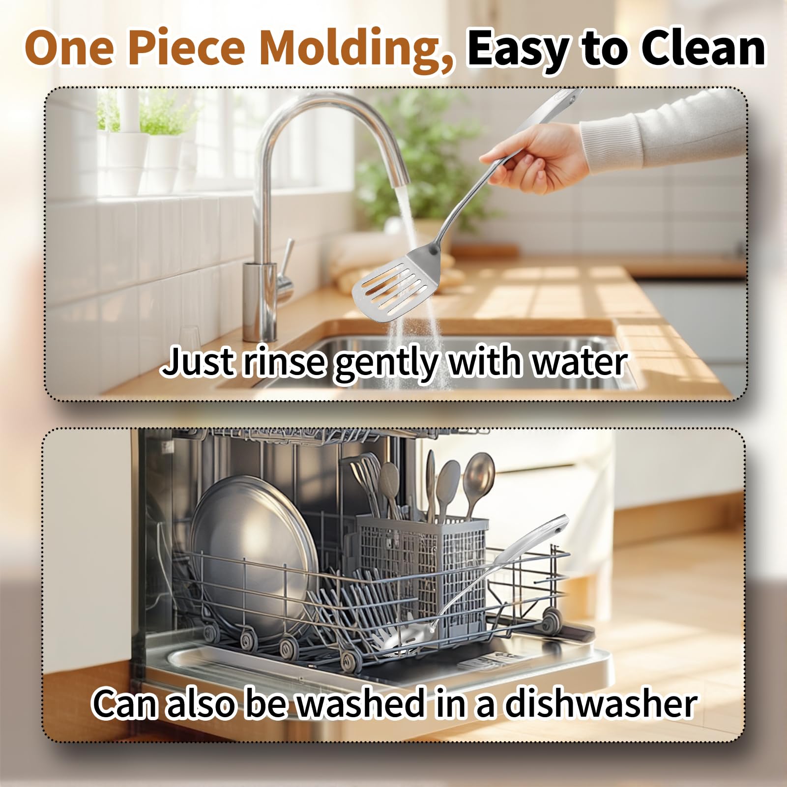- Integral Forming. The Turner and the handle is made by integral forming of 304 stainless steel, more durable - No longer have concerns of loose handles. Smooth surface for preventing from dirty. Easy to clean, dishwasher safe.