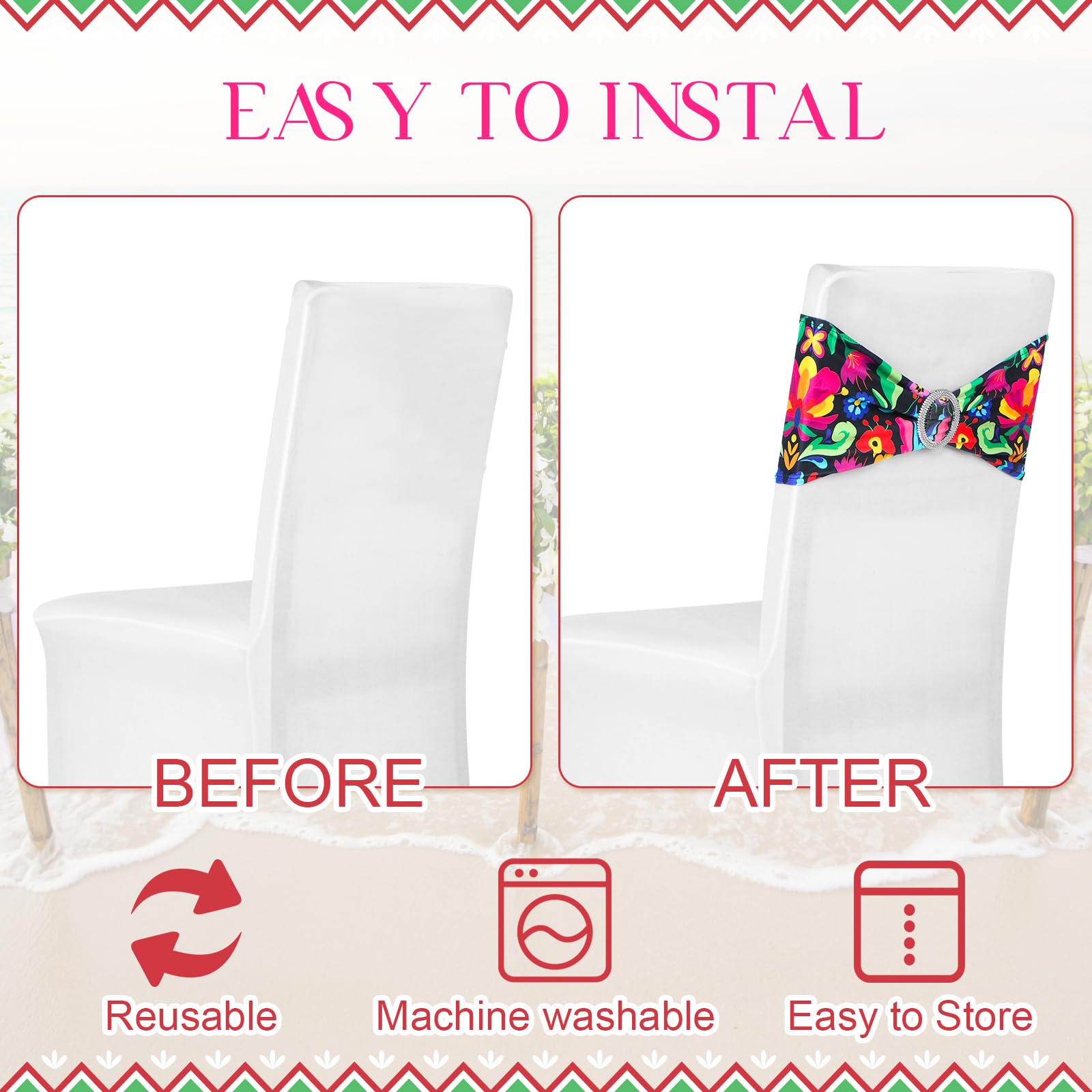 - What you have received: you can get 36 pcs Mexican themed chair belts in this package, which feature a classic Mexican floral pattern design that is eye-catching and sufficient in quantity to meet your decoration needs during holidays and parties