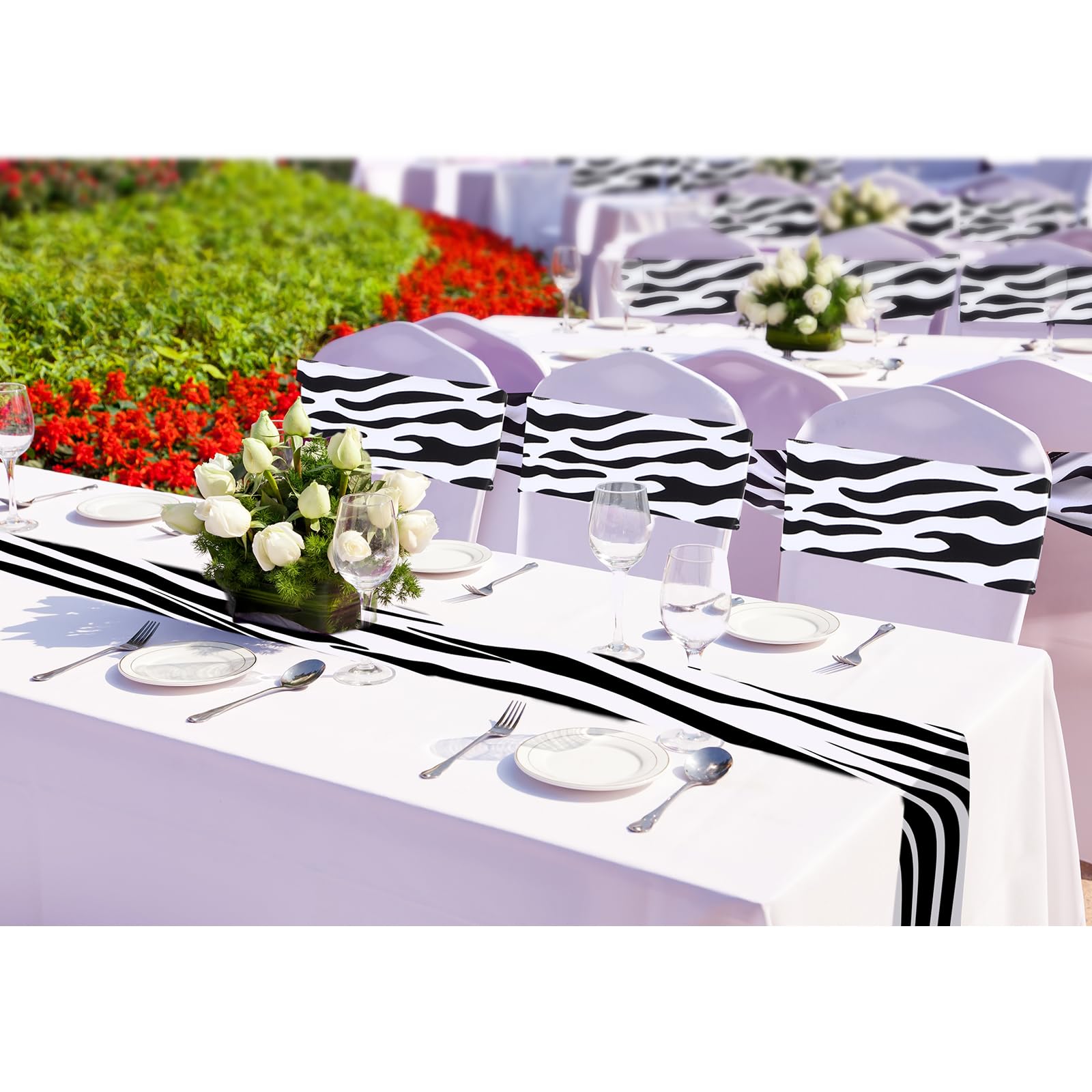 - Package Inclusions: package comes with 36 pieces of zebra stripe chair sashes (chairs and chair covers are not included), ample supply to fit your safari themed parties; With a size of approx. 14 x 6 inches/ 36 x 15 cm and nice stretchy feature, they can accommodate most banquet chairs