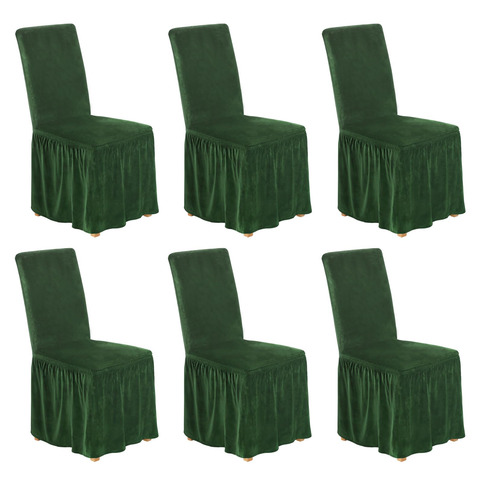 NICEEC Spandex Chair Covers for Dining Chairs Covers Set of 6 Removable Dining Room Chair Covers with Skirt Parson Chair Slipcovers Washable Chair Protector for Kitchen Wedding Party Banquet(Green)