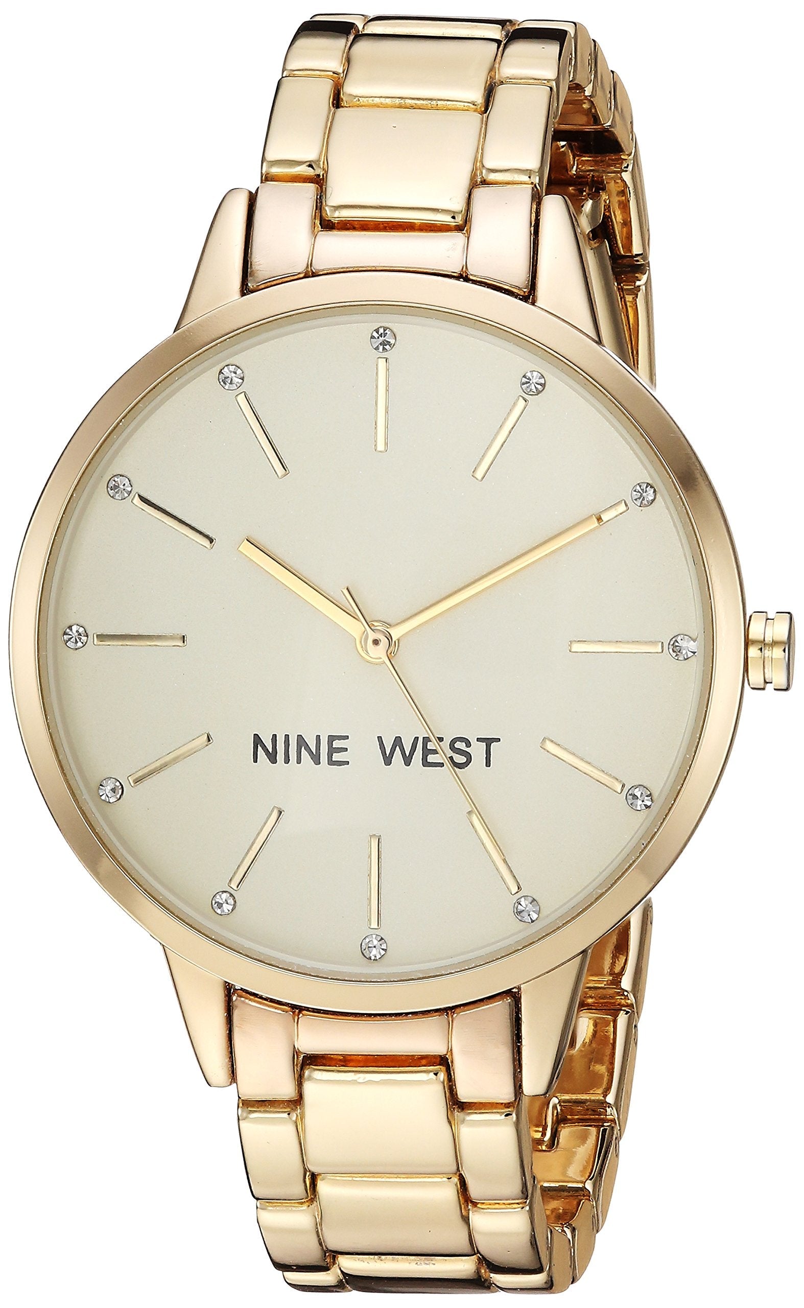 Nine West Women's Crystal Accented Gold-Tone Bracelet Watch