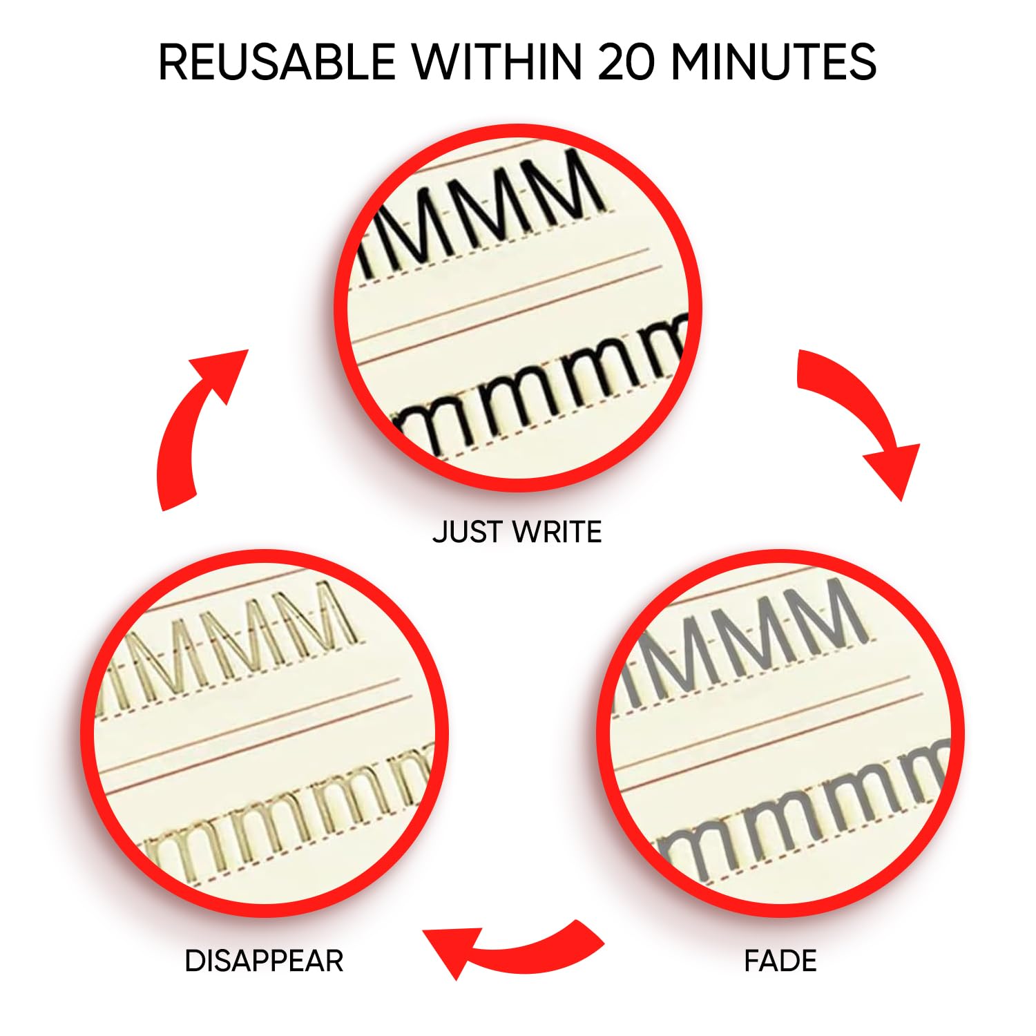 -For the copybook to be reused, it must be used with the auto-fade pen included in the package. If ordinary pen is used, the book cannot be reused.