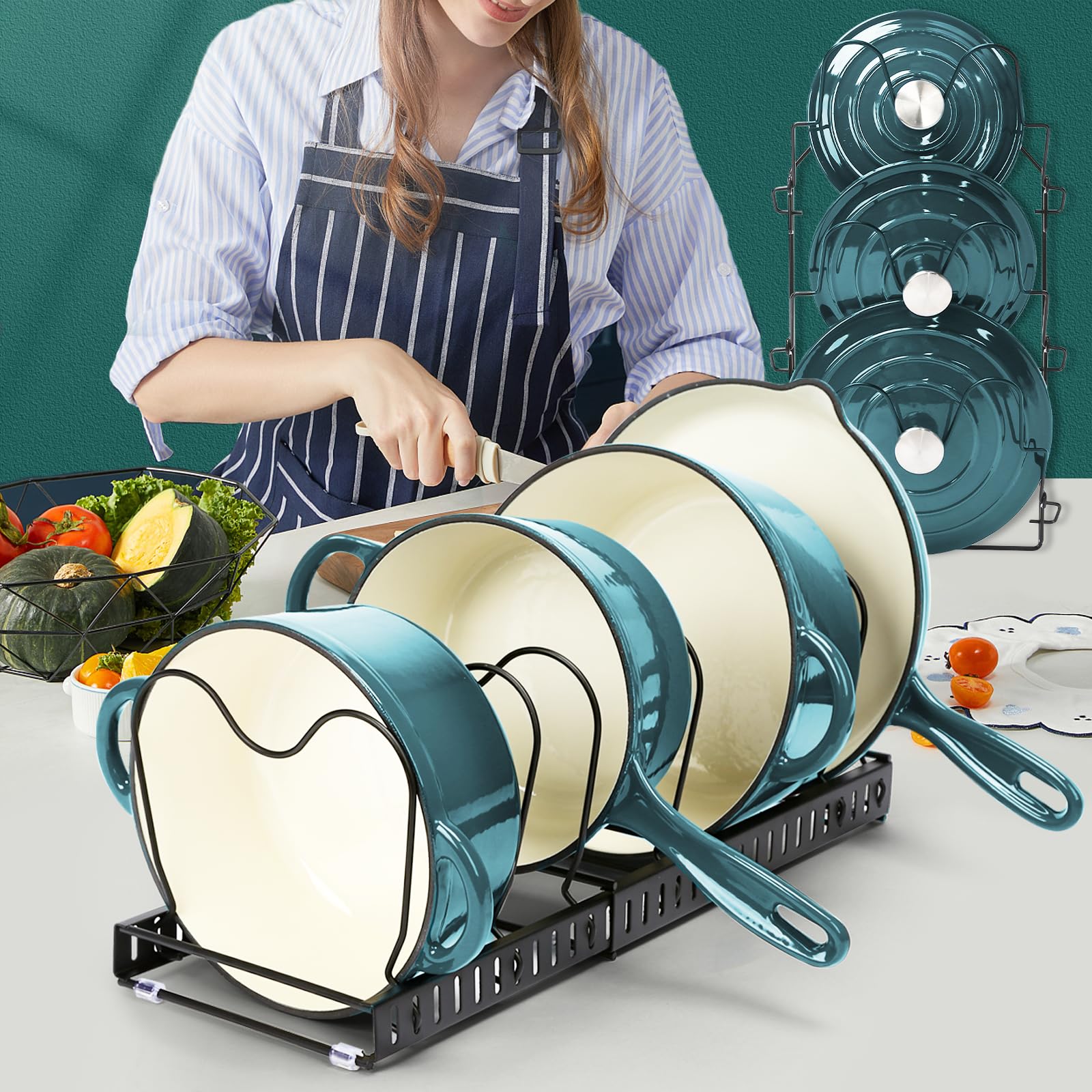 - What in the Box: These enameled cast iron skillet includes 4.8-quart large dutch pot with lid, 2.8-quart small dutch pot with lid, 2-quart saucepan, 10.25-inch skillet, 1pcs pot storage rack and 1pcs lids holder. After owning this cast iron pan set, you can cook everything like soup, stews, breads, oven roasted and whole chicken with vegies, beef roast, pork roasts, bread on and so on.