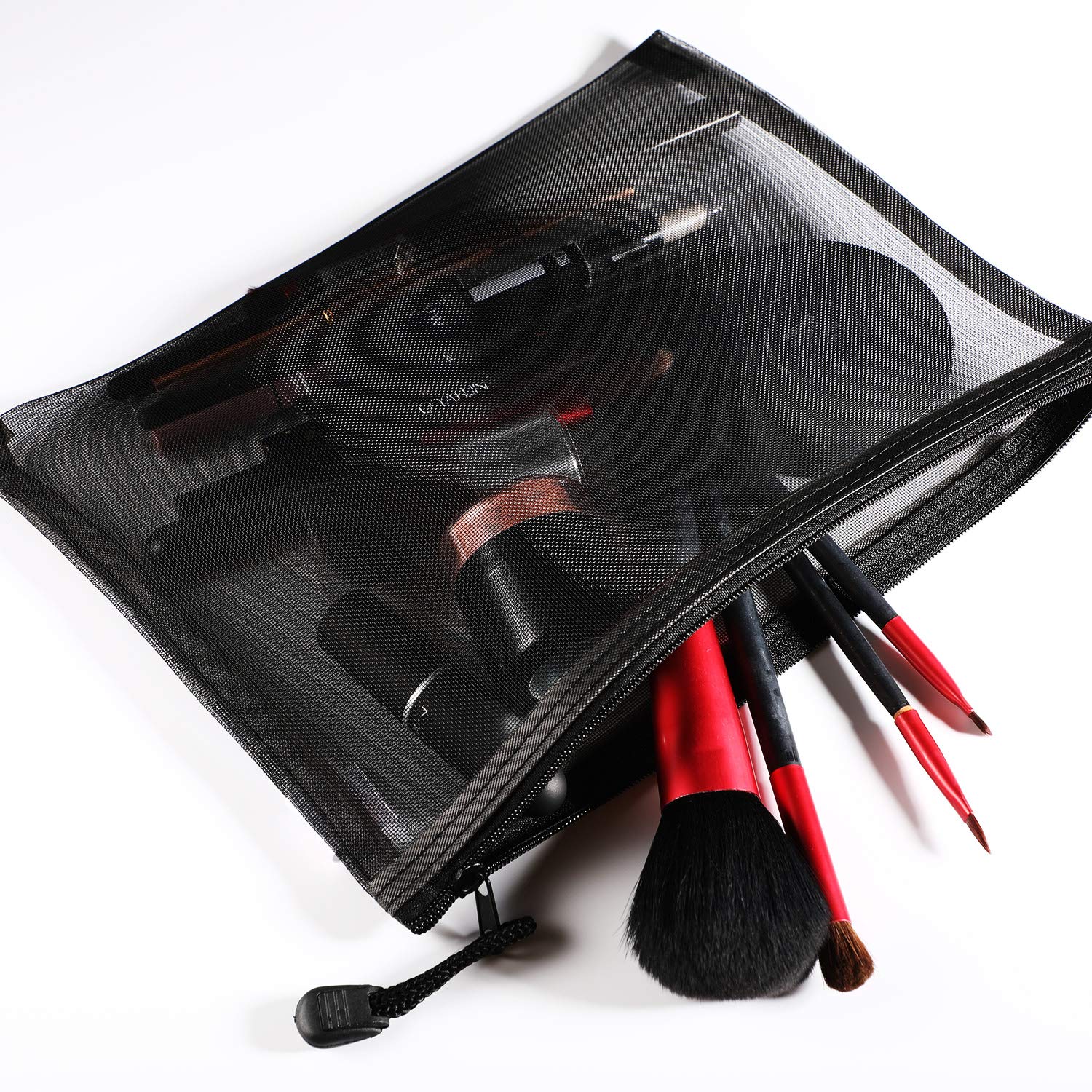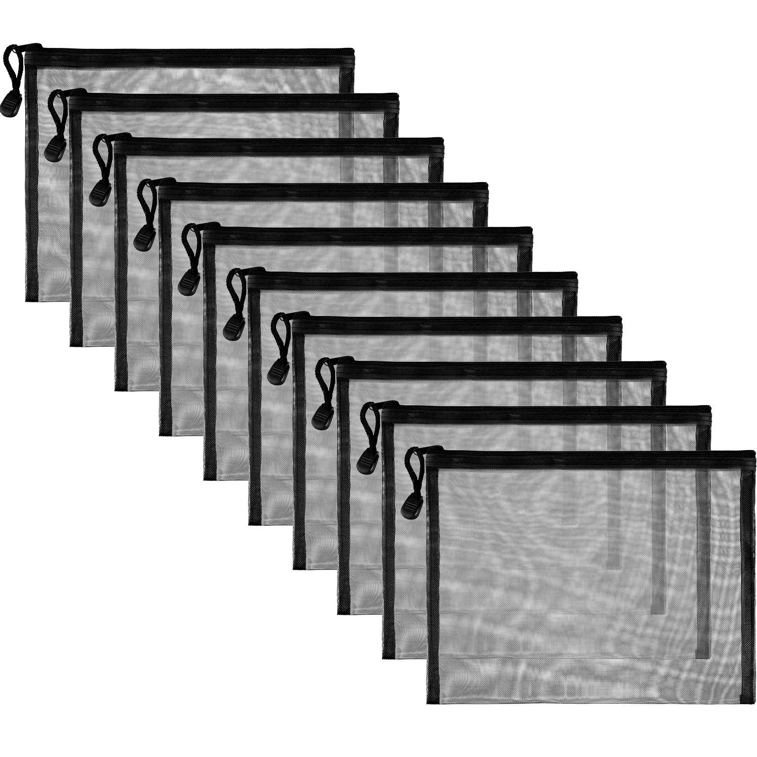 Norme 10 Pieces Black Mesh Bags Makeup Bags Cosmetic Travel Organizer Bags Mesh Zipper Pouch Pencil Case, 9.5 x 7.1 Inches