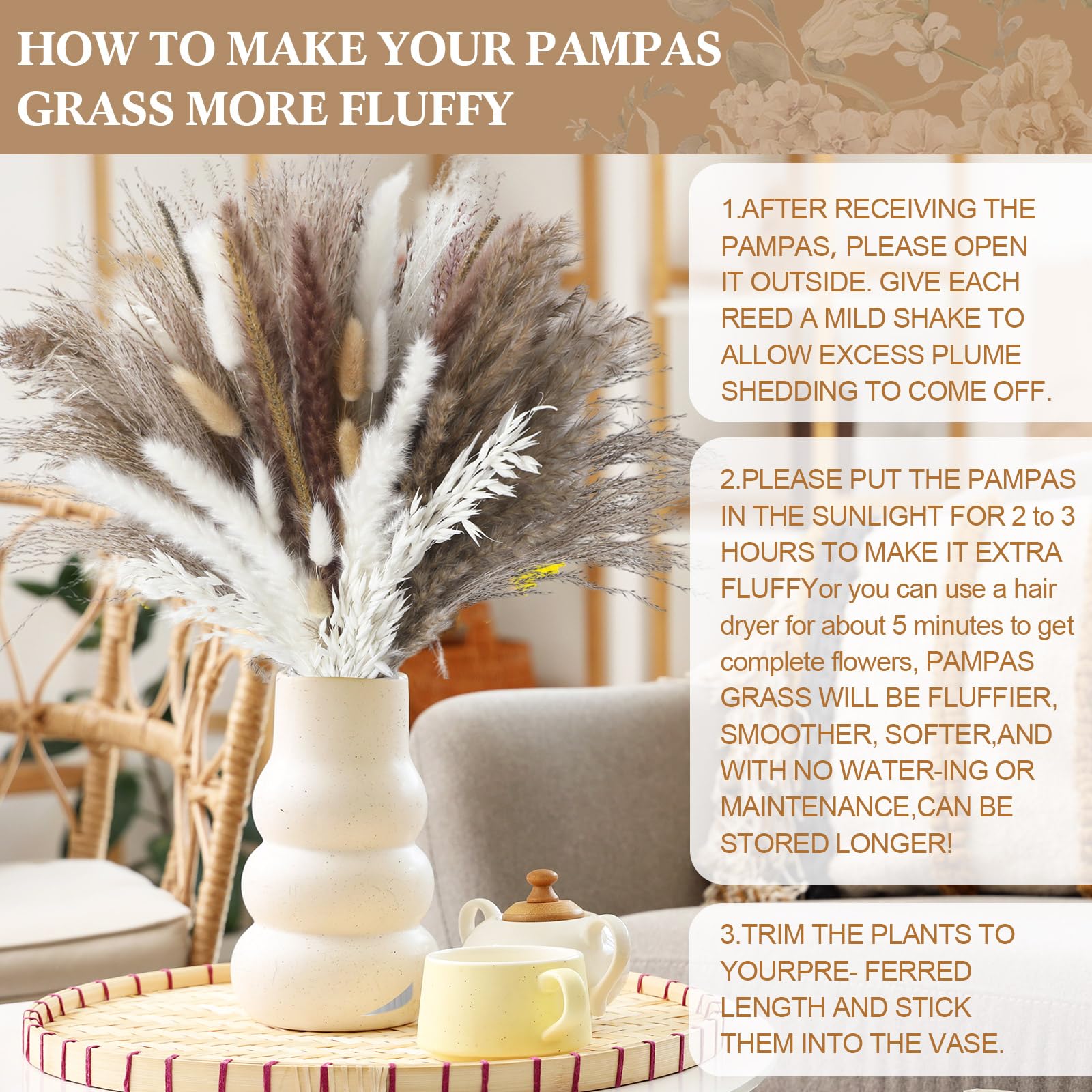 Nuanchu 703 Pcs Dried Pampas Grass Decor Boho Flower Bouquet Bulk with Bunny Tails, Reed Grass for Wedding Home Table Rustic Farmhouse Party Office(Retro Style)