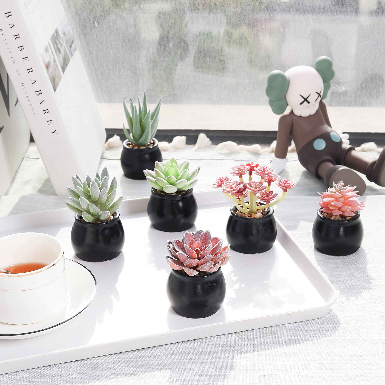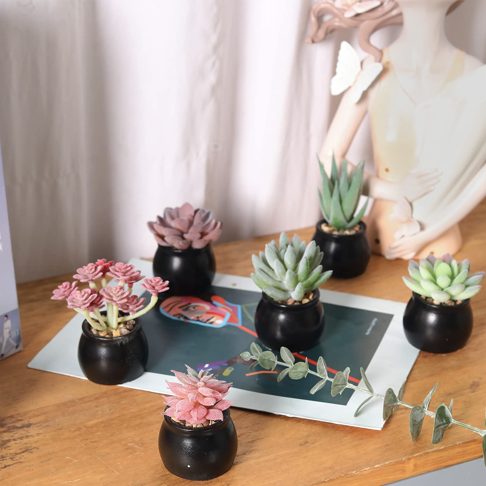 - Quantity: Set of 6 pieces different fake succulent plants potted