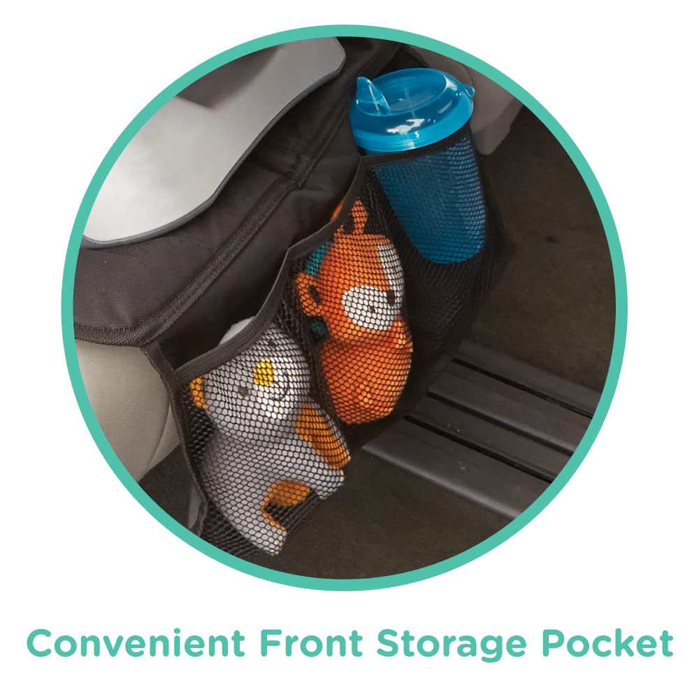 - Protects upholstery and secures car seat in place. Never worry about the car seat slipping or that dreaded juice box leaking again.