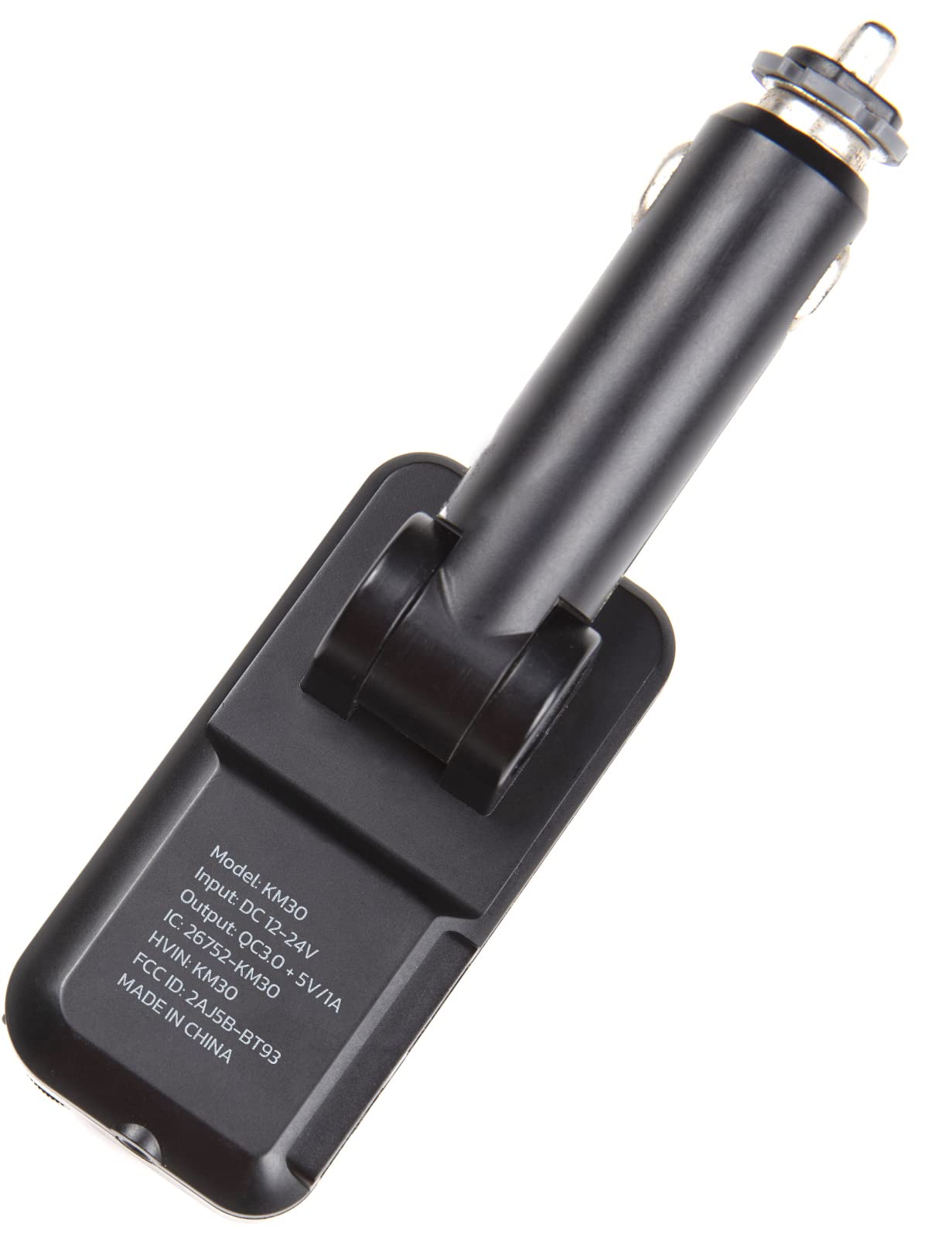 - Kindly Note: Compatible car cigarette lighter socket dimensions: Diameter (without spring clip): 20mm,Diameter (with spring clip): 24mm, the deepth of the car cigarette lighter socket is 65-70mm. Surface dimensions of the KM30 Bluetooth FM Transmitter: the width of the screen plain surface is 41mm, the length is 85mm, and the thickness is 14-16mm (With rotary button is 24mm). Please compare the size between the transmitter and your car cigarette lighter bofore getting it.