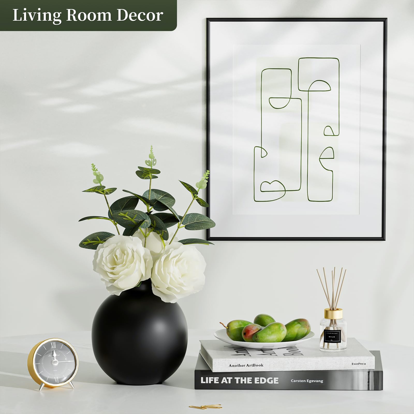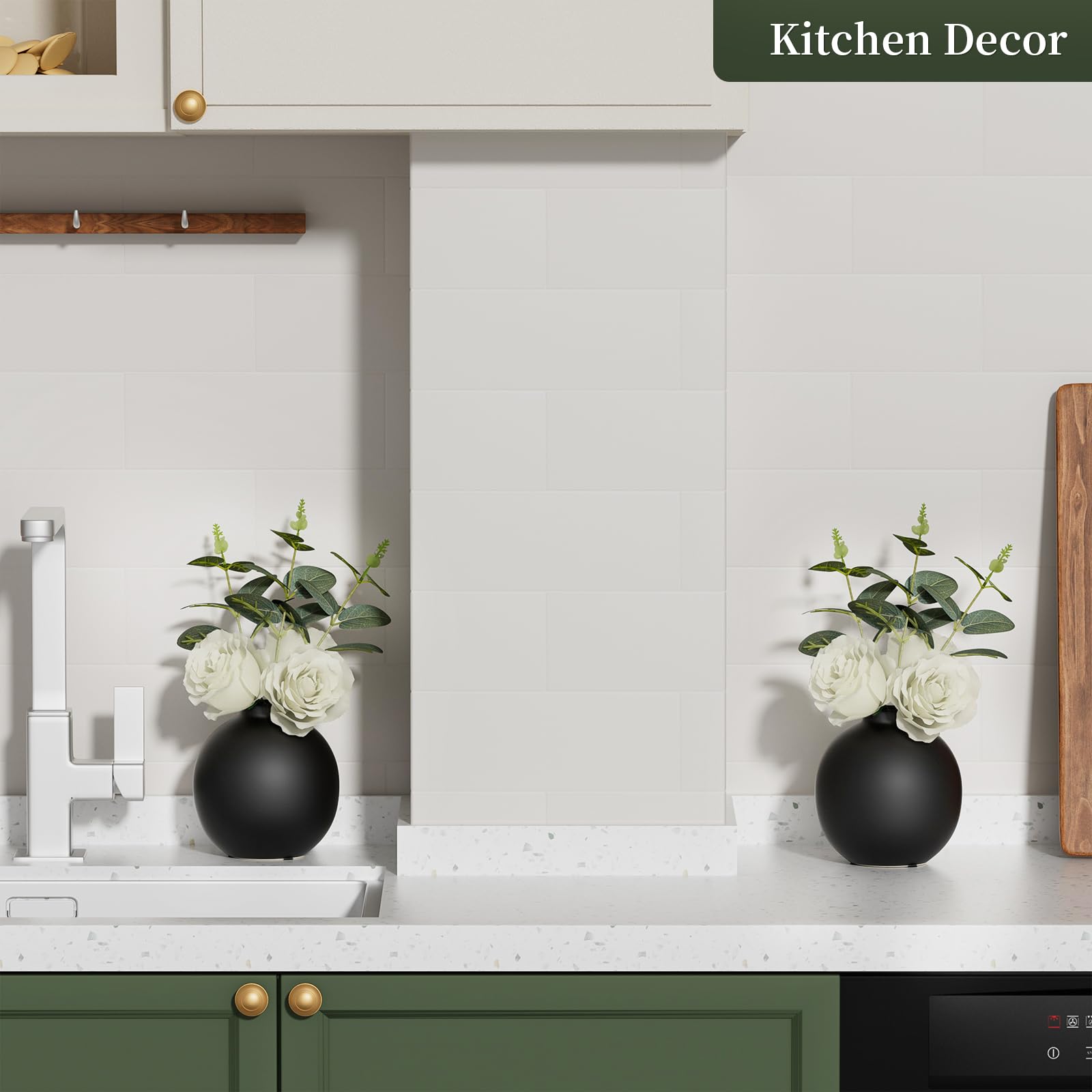 Nztze 2 pcs Artificial Plant Kit with Ceramic vase, Combination of Three White Roses and Greenery, Small Plant Potted Decor for Offices, Bookshelf, Bedroom, Living Room, Party, Wedding Decorations