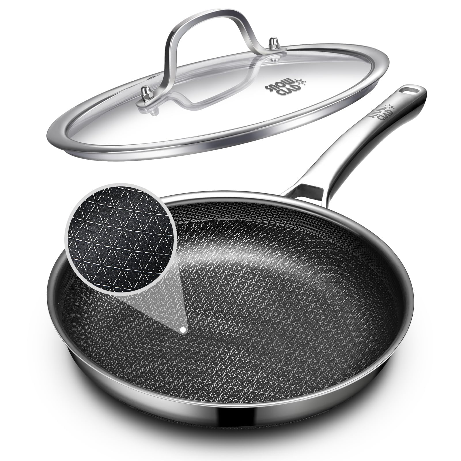 - 〔Surface of SnowFlake〕: Our non stick frying pans combine stainless steel with a non-stick layer using precision laser etching. This unique design offers superior heat conduction and protection for the non-stick coating. Plus, the coating layer helps food release and glide more easily than a traditional stainless steel pan.