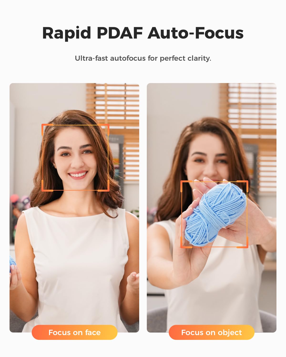 - 【Multiple Shooting Modes】The web camera not only supports horizontal, portrait, upside-down shooting modes, but also automatically adjusts the screen according to the machine's placement without sacrificing image quality. No matter which mainstream live broadcast platform, or any environment you want to shoot, it can easily cope with.