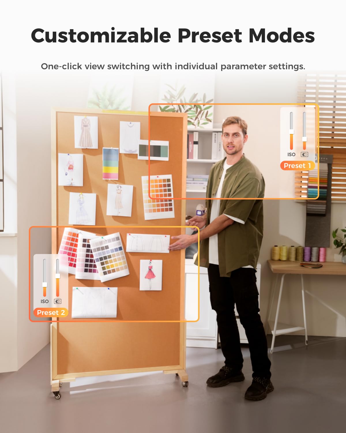 - 【Customizable Preset Modes】The webcam for PC newly upgraded Preset Position function not only can set multiple preset positions, but also customizes separate parameters and AI tracking modes for each preset position. Even when the scene switches, it reduces adjustment time while still ensuring that every frame is shot at the optimal setting.