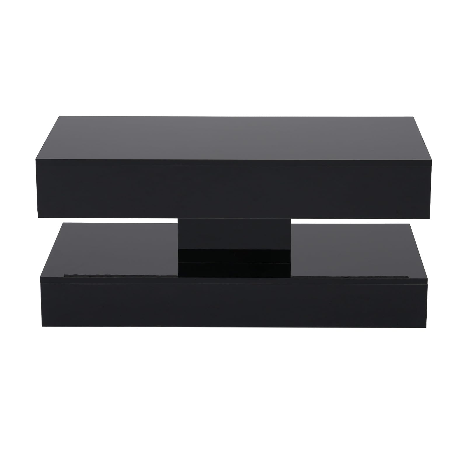 OC Orange-Casual LED Coffee Table with Storage, High Glossy Center Table with 2 Sliding Drawers, Modern Stylish Rectangle Coffee Table Double Layer with Open Display Shelf for Living Room (Black)