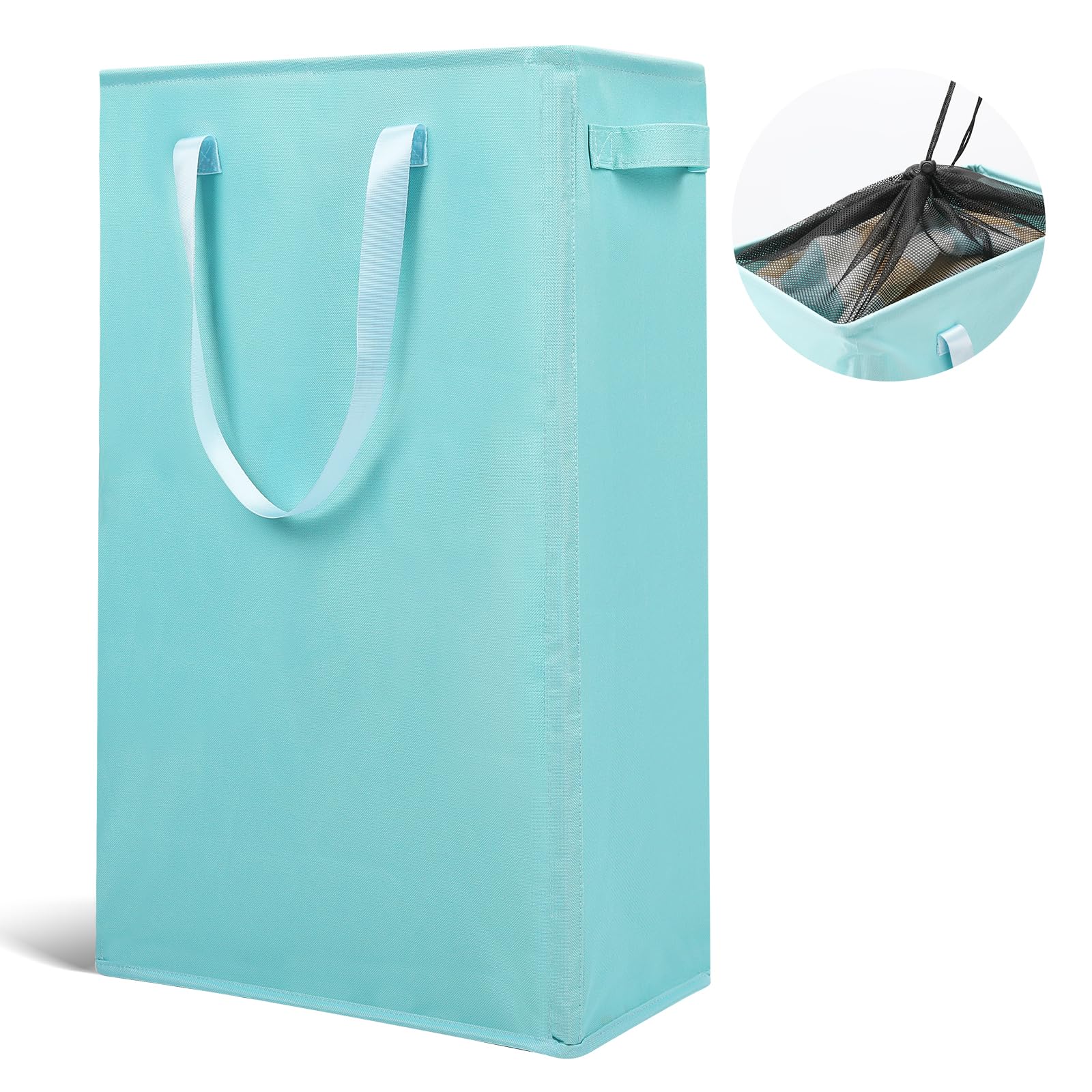 Odonata Slim Laundry Hamper Handles Collapsible Laundry Basket Thin Dirty Clothes Basket Narrow Laundry Bag Foldable Dirty Hamper 45L (Dark Grey)