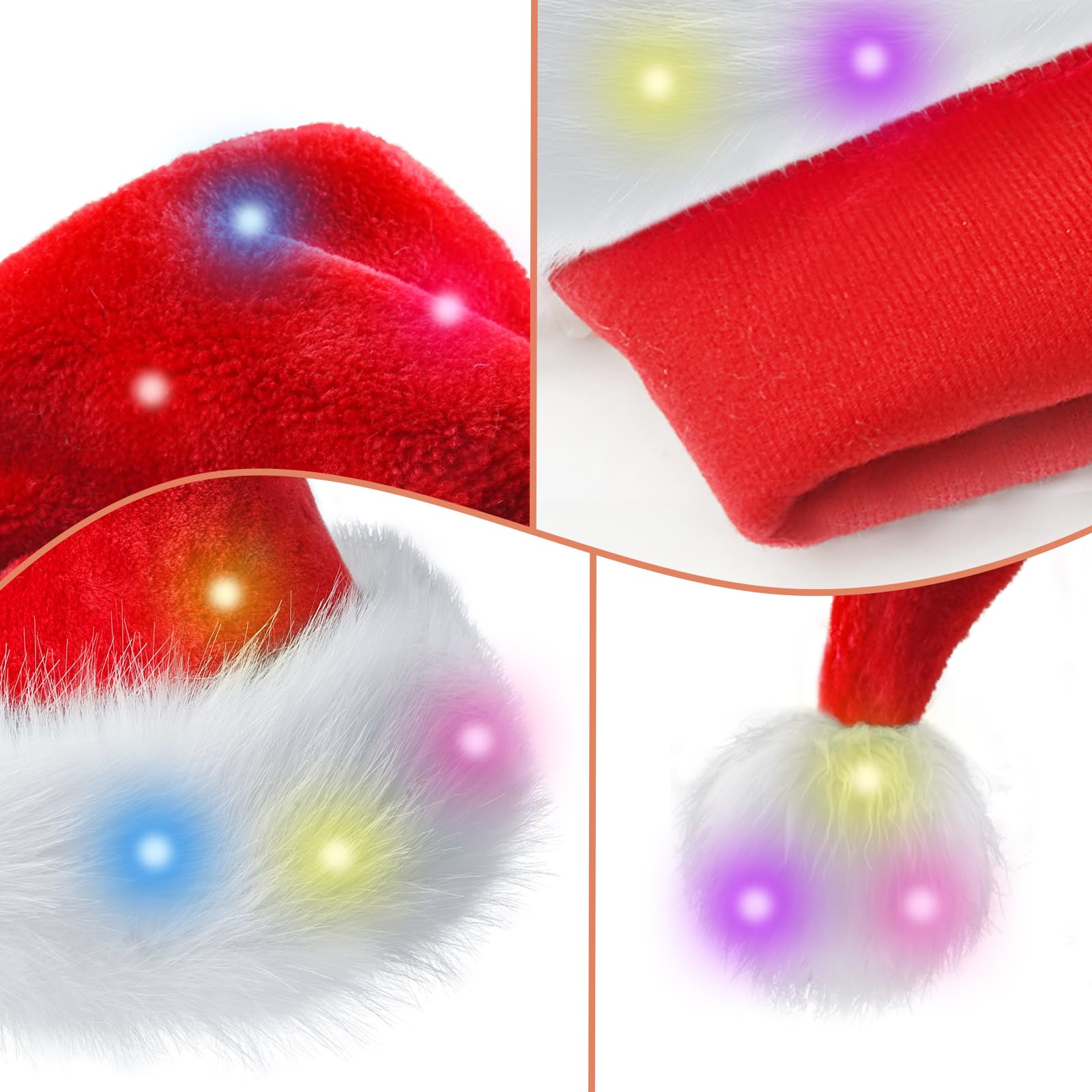 - Wonderful Christmas Must-have: Our Christmas hat for adults lovely Led Light xmas hat, the whole Santa hat including the hat ball will shine brightly. great gift for friends and families.which leaving a warm memory of christmas every year with this Santa hat shooting family photos.the santa hat brings a nice atmosphere at christmas, for new year stage Performances xmas party, and winter warm.