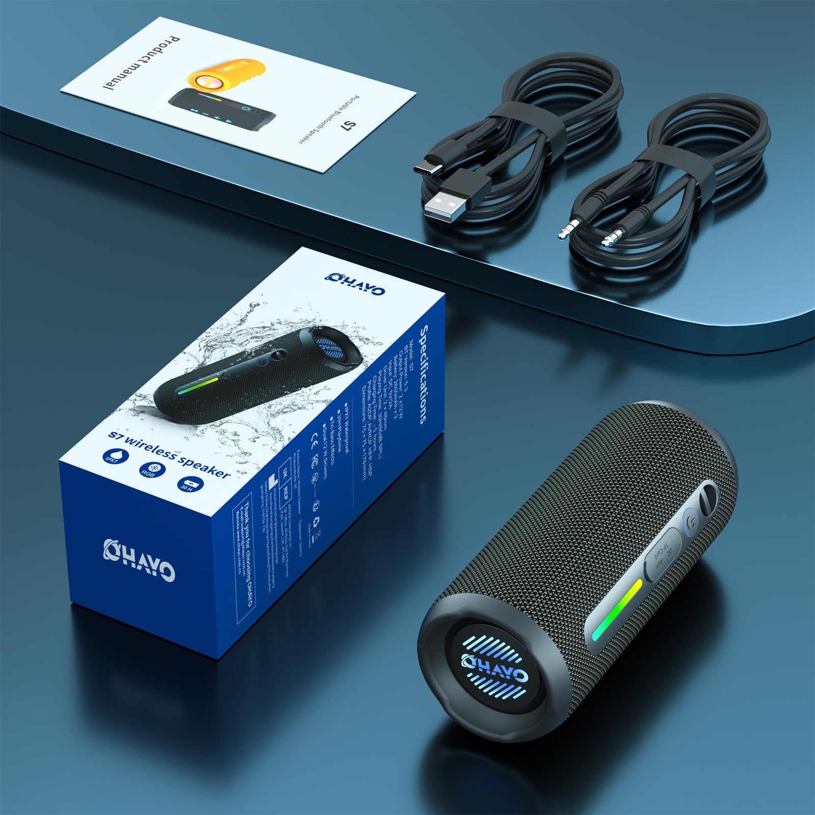 OHAYO Portable Bluetooth Speaker - IPX7 Waterproof, Wireless Stereo Pairing, 25-Hour Playtime, 24W Loud Sound, Bluetooth 5.3, Bass Boost, LED Lights, for Home/Shower/Outdoor/Beach/Travel, Gift Ideas