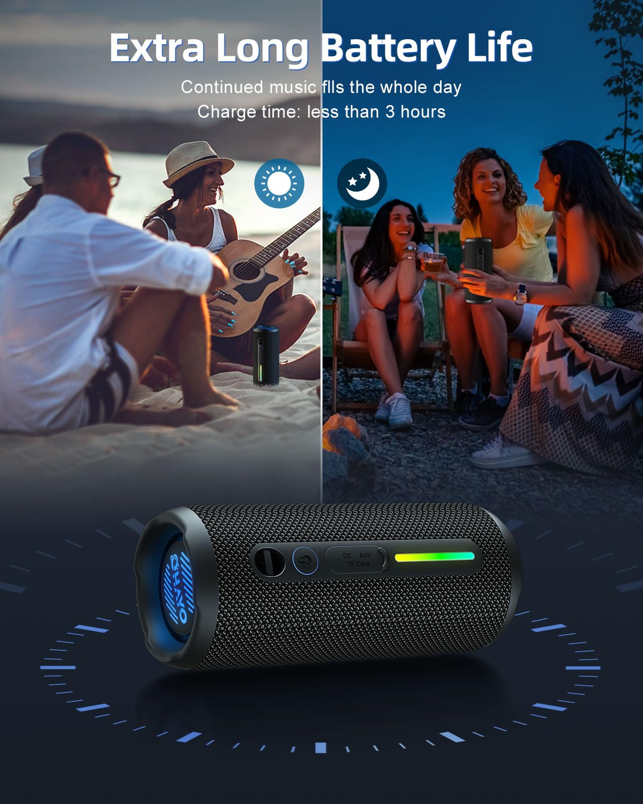 - 🌊 [IPX7 Waterproof + Drop-Proof] Survives Pool Parties & More: Fully submersible in 3.3ft water for 30 mins—ideal for beach trips, kayaking, or accidental spills. Military-Grade Tough: 1.5M drop-tested (most speakers fail at 0.8M)—throw it in your backpack easily.