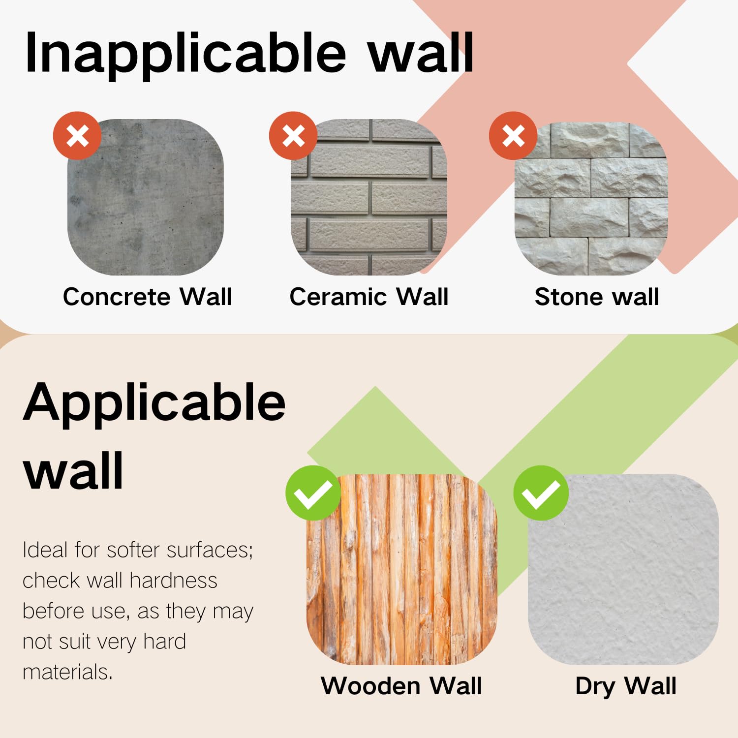 - Our nails are ideal for use on softer, less dense surfaces, ensuring a secure hold for your items. Before purchasing, please consider the hardness of your walls. Our nails may not be suitable for very hard or brittle materials, so make sure to assess the wall type in your home for the best results