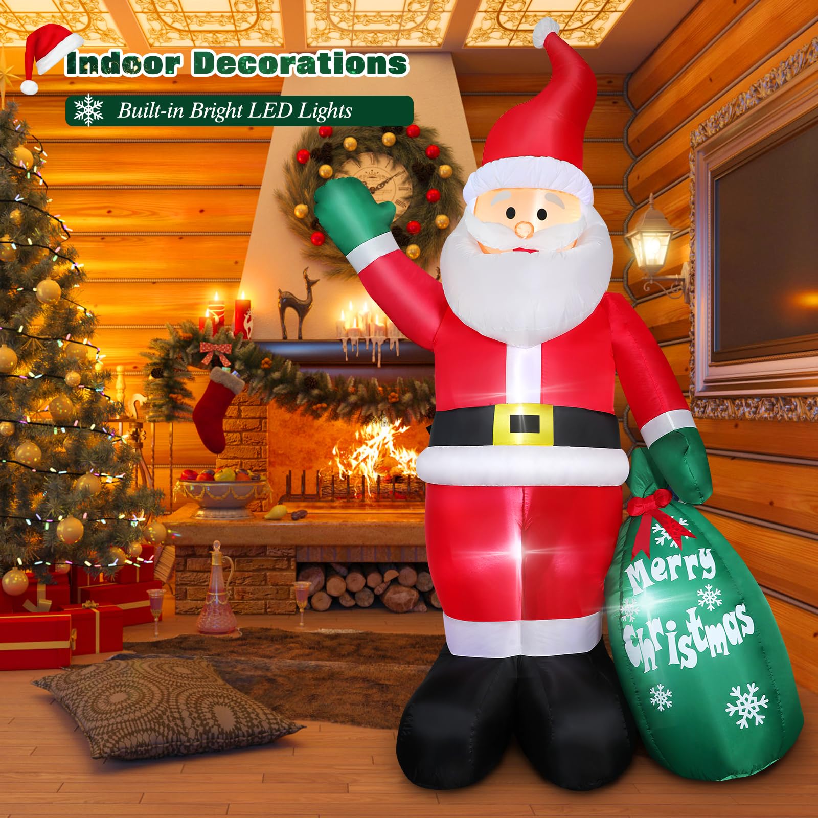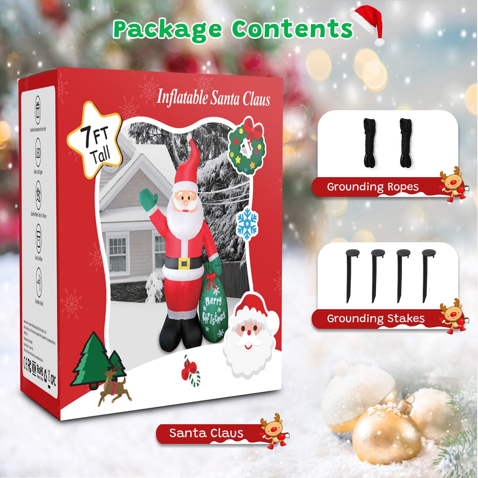 - 【Classic Christmas Inflatable Santa Claus】Omdekor 7FT Christmas inflatable Santa Claus with big green gift bag kindly wave to you, which is eye-catching and charming addition to any Christmas celebration. It has built-in LED lights to light up your lawn, yard, garden, patio, home, porch in the evening, bringing the warm Christmas atmosphere.
