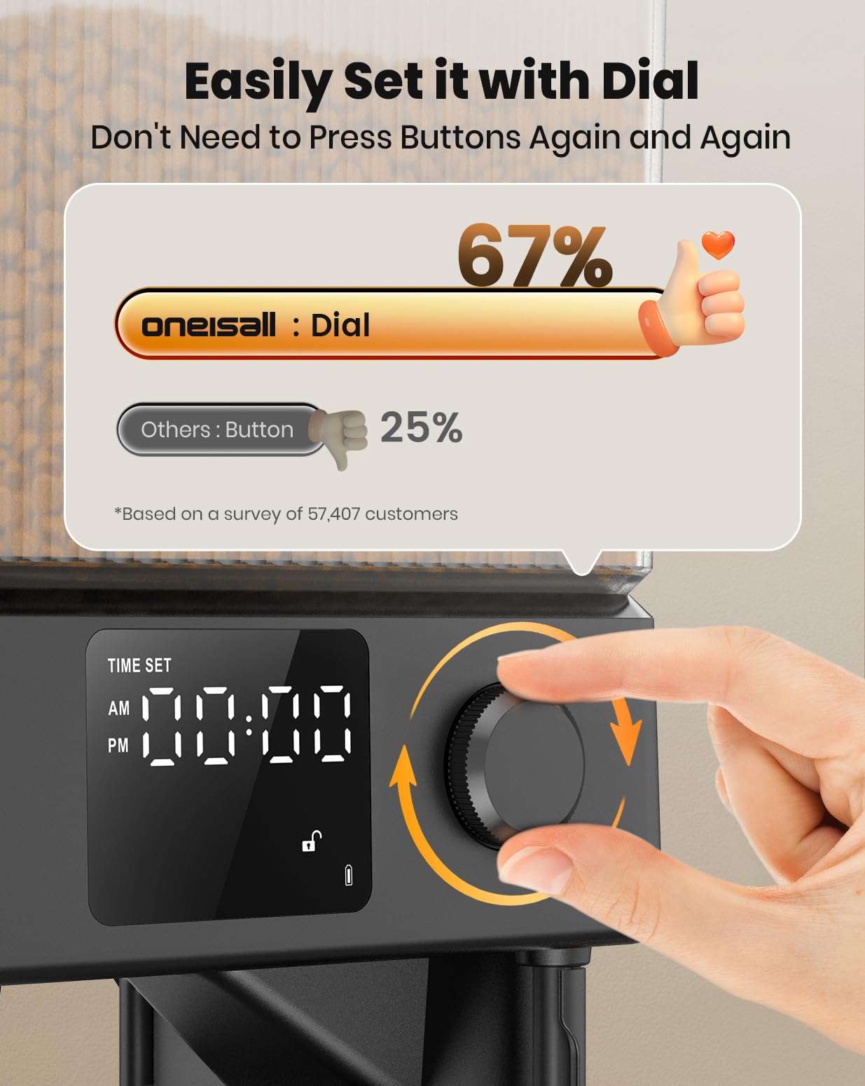 - Easy to Set Up: oneisall automatic cat food dispenser has a dial to simplify the programme. Everyone can easily set up it and control feeding