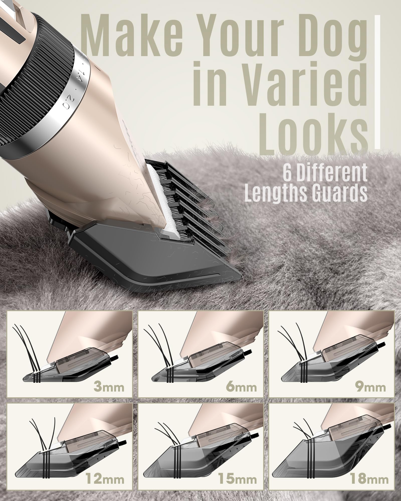 - Designed for Beginners: It comes with 6 guide combs(3/6/9/12/15/18mm) and a charger that allows for use while charging. With a one-touch start-up in just 1 second. Quick to master, show off your pet's fresh new look to the neighbors—crafted by you!