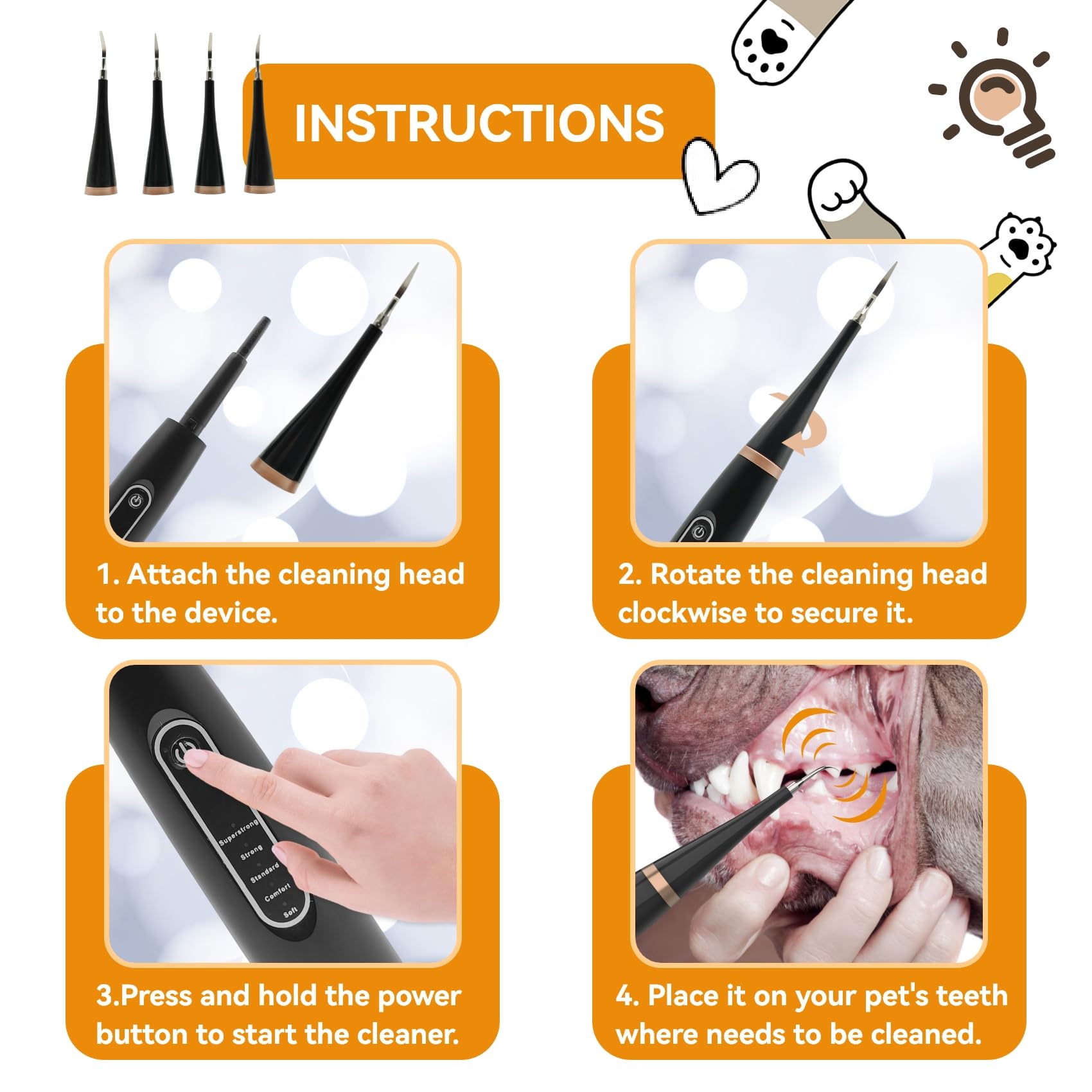 - 【Higher Efficiency Pet Tooth Cleaner】This tartar remover for teeth can easily and effortlessly remove tough plaque and tartar buildup, and lift stains off the teeth, say goodbye to bad breath and loss of appetite. Meanwhile, for reducing damage to teeth and keeping gums healthy, our teeth cleaner uses high-frequency vibration technology up to 40KHZ and even reachs 2 million Vibration/Minute.
