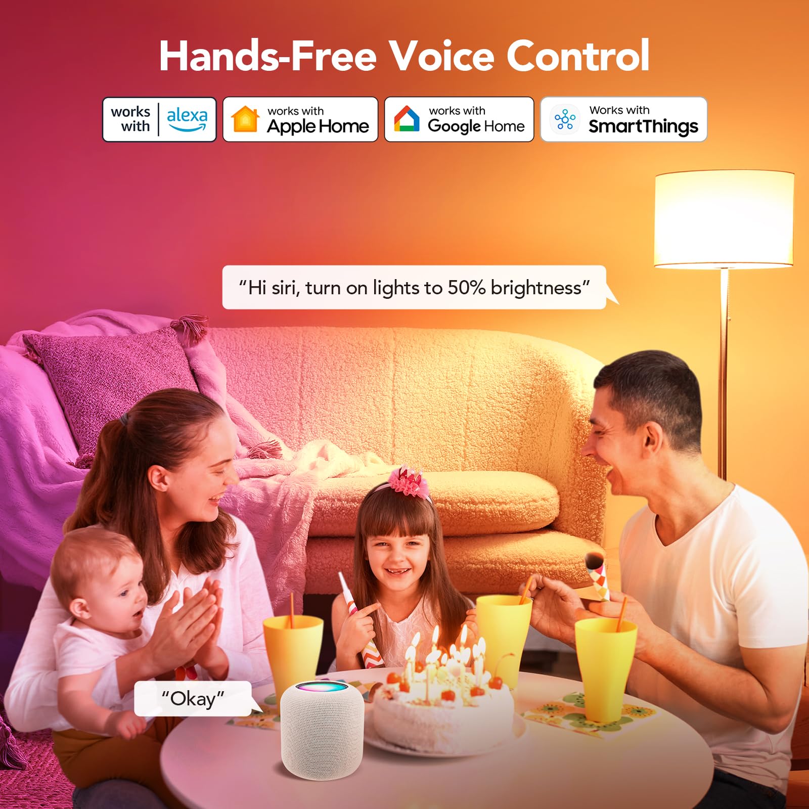 OREiN Matter Smart Light Bulb, Smart Light Bulbs Work with Apple Home, Alexa, Google Home, SmartThings, A19 Color Changing Light Bulbs 2.4Ghz WiFi, 800 Lumens Equivalent 60W 4Pack