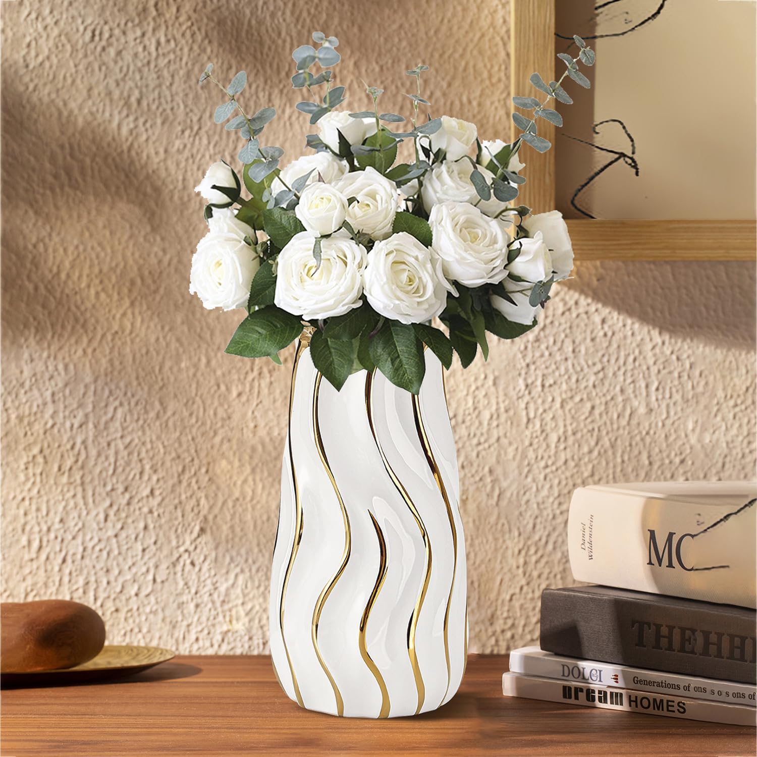 - Suitable for various occasions: Classic shaped white ceramic vases can be used alone. In bookshelves, coffee tables, tabletops, shelves, farmhouses, fireplaces, or table center decorations, flowers or dried flowers, stems, bouquets, and green plants are beautiful personalized items;