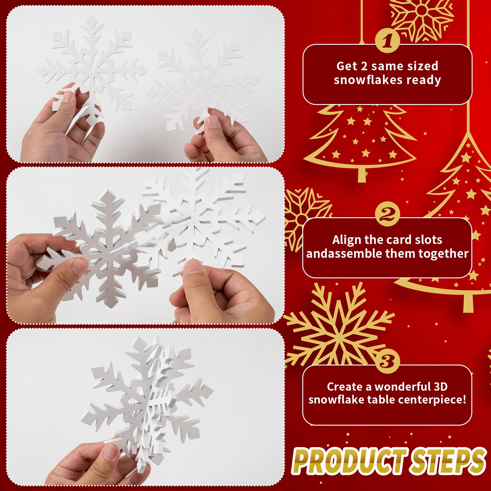 - UNIQUE DESIGN: Charming 3D Christmas snowflake decoration makes perfect winter themed party favor. Simply align the same sized snowflakes’ card slots and assemble them together, make it easy to become a wonderful Christmas table decoration, give a big hit to your guests.