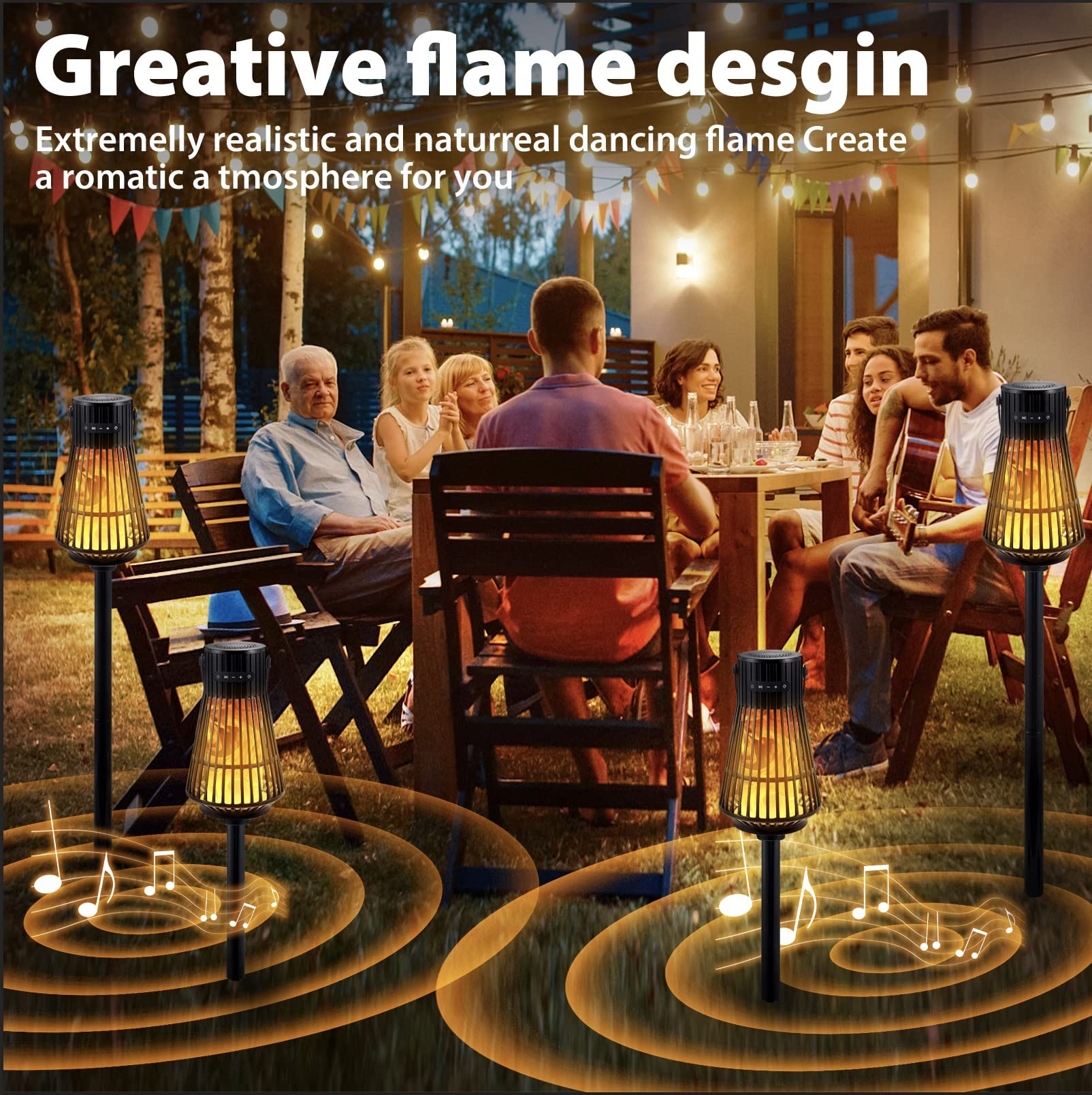 - [3 IN 1 Outdoor Bluetooth Flame Speaker]: Tesoorda outdoor bluetooth speakers is multiple used in 3 modes as Portable Wireless Speaker+ Patio torch & Wall Mount Flame lamp+ Led night light, it’s not only a perfect atmosphere maker for your party, BBQ and camping, but aslo a warm night light for your yard, garden and bedroom.The wireless bluetooth 5.0 is Easy to reconnect after your fist time of use.
