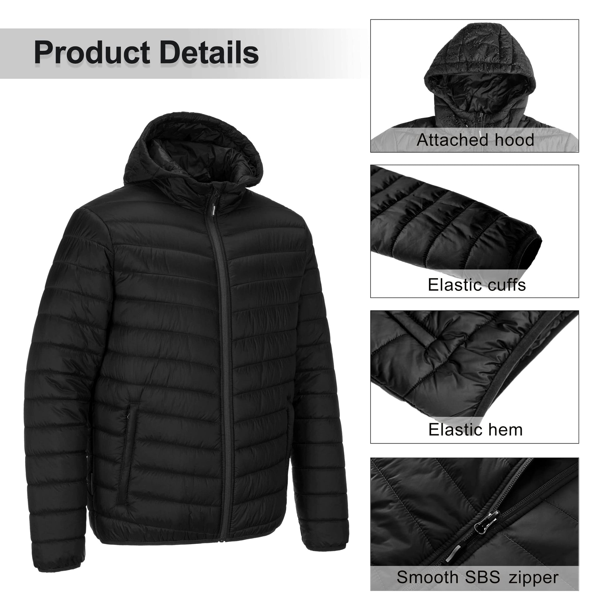 Outdoor Ventures Men's Lightweight Packable Hooded Puffer Jacket Insulated Winter Coat for Snow Ski Traveling