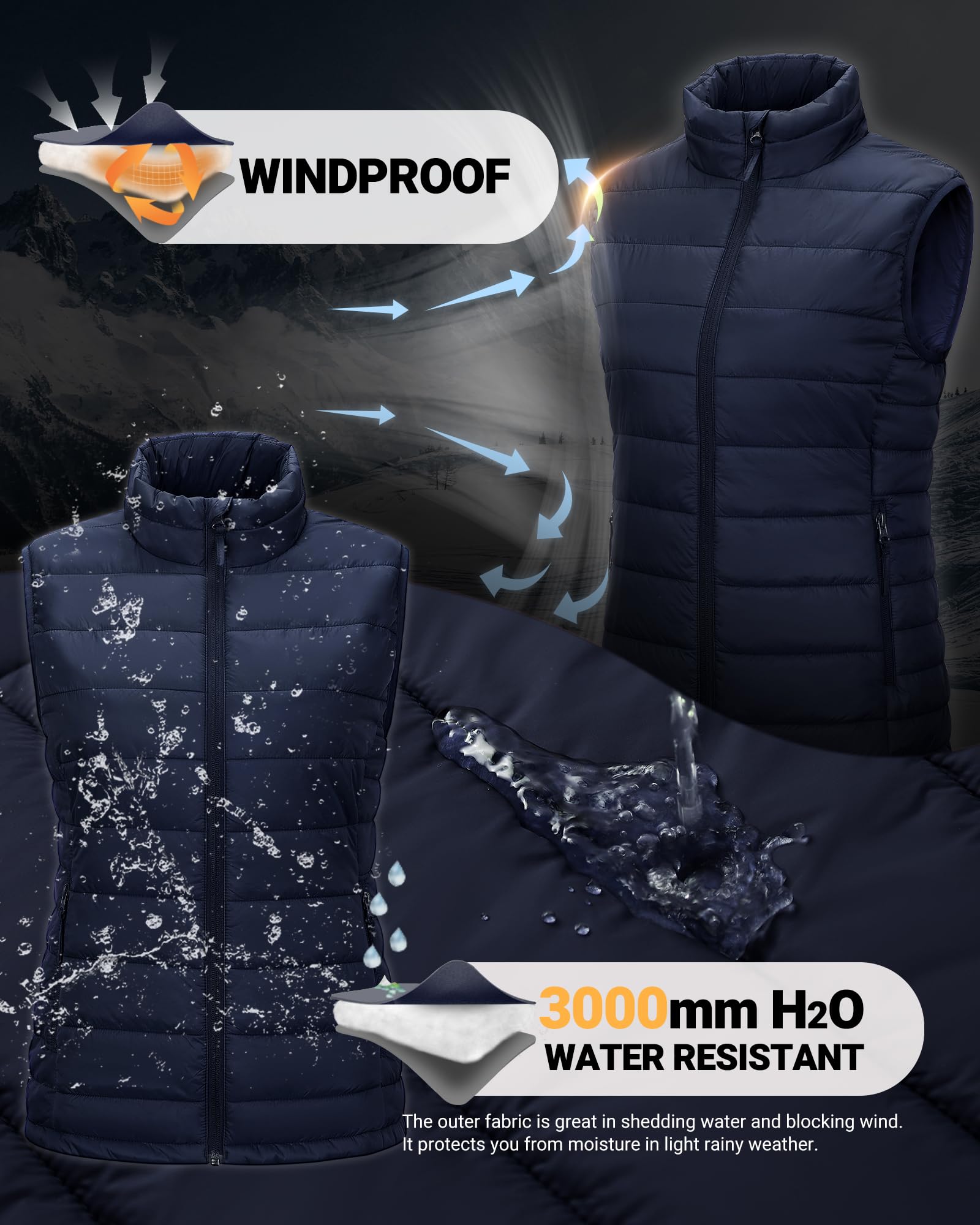 - Water-resistant & Windproof - The outer breathable fabric sheds water and blocks wind well while retaining heat with the soft warm insulation, helping you stay warm and dry without being weighed down. It's perfect for layering with flannel shirts, puffer jackets and sweaters without feeling bulky for chilly/cold days during spring, fall or winter.