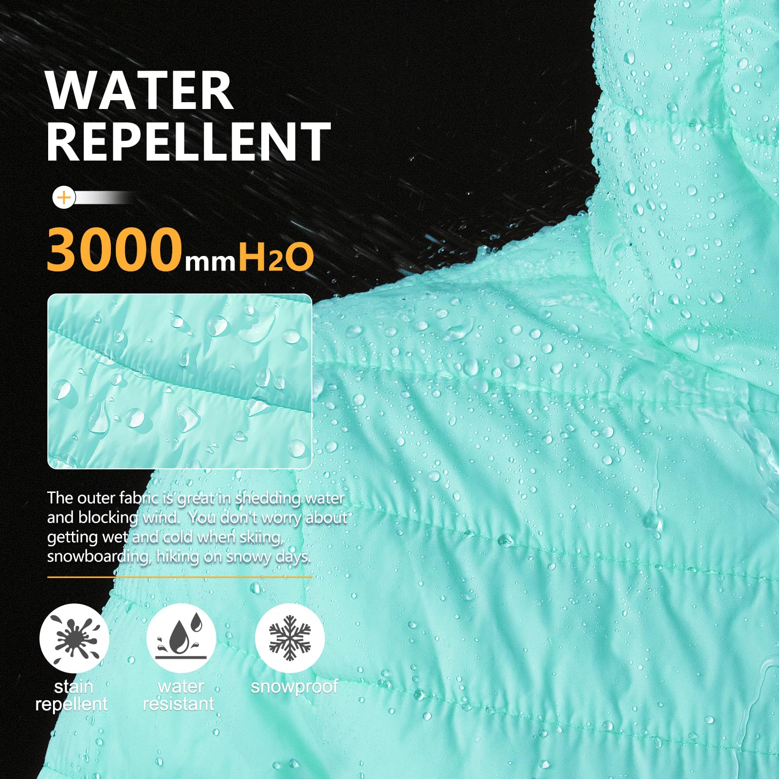 - [Humanized Design] Outdoor Ventures women's hooded puffer jacket includes 2 outside zipper pockets and 1 zipper chest pocket. It is great for storing money, keys, phone, wallet, passport etc, providing great privacy and convenience for you.