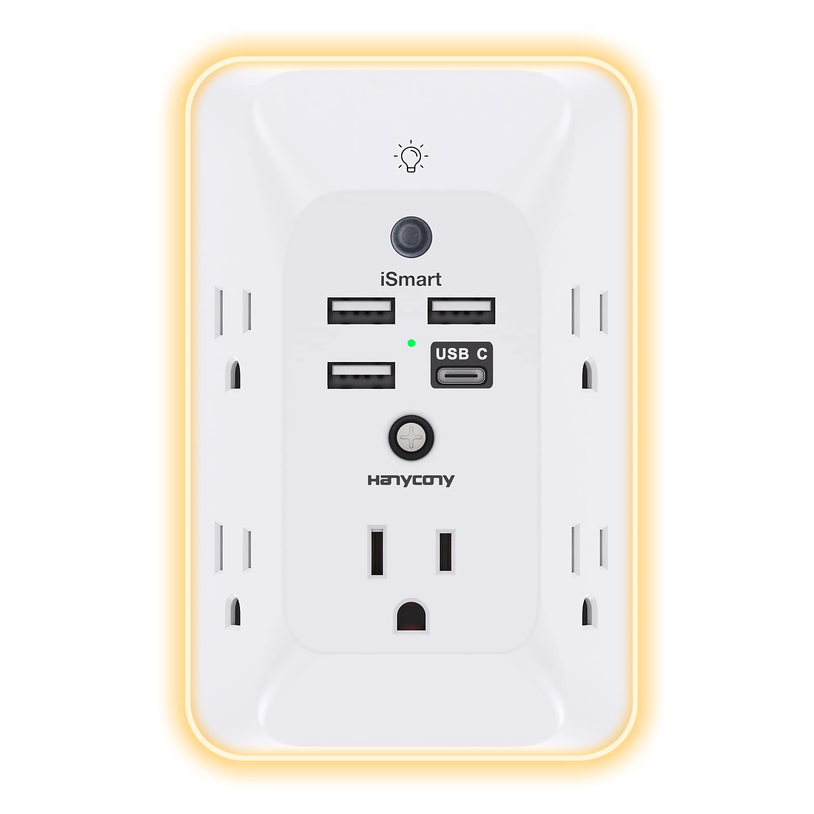 Outlet Extender with Night Light, HANYCONY Multi Plug Outlet, USB Wall Charger Surge Protector 4 USB Ports(1 USB C), Power Strip Electrical Outlet Splitter Expander for Home Office Dorm Room, ETL