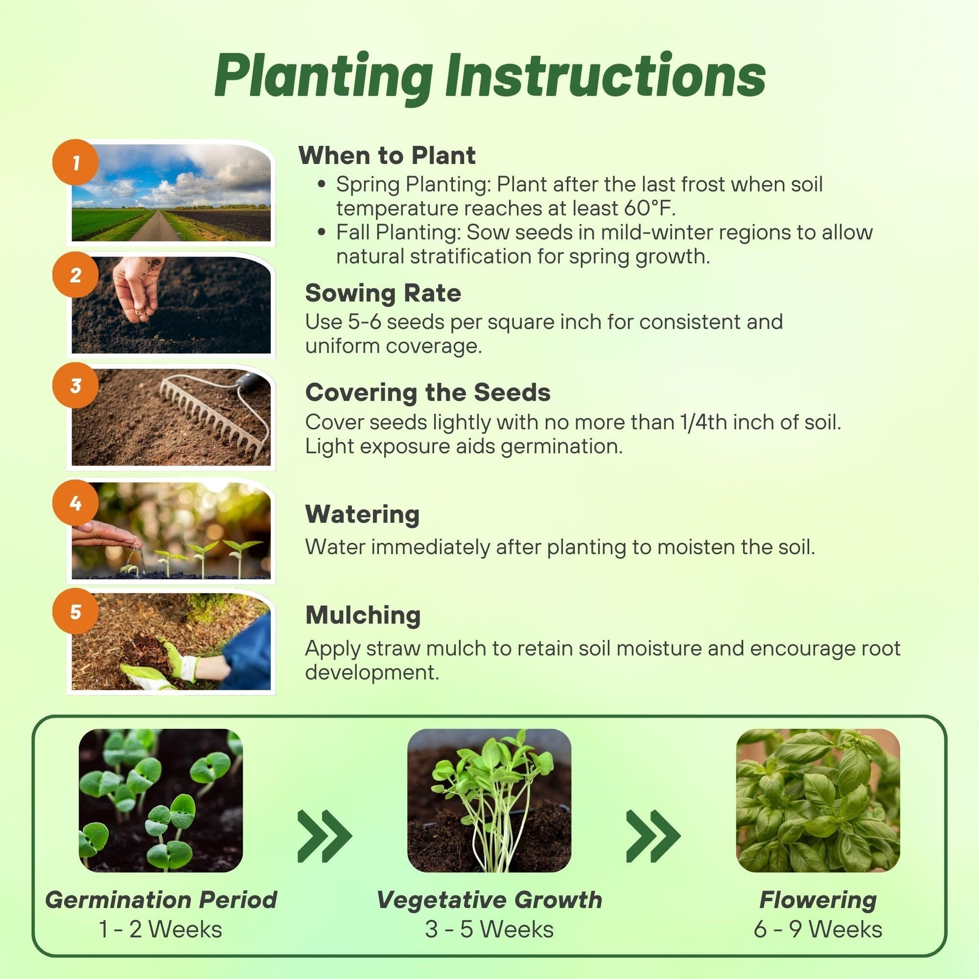 - COMPACT, VERSATILE GROWTH: Our Genovese Basil Microgreen seeds grow 18–24 inches tall and are well-suited for USDA Zones 4–9. They grow under full sun using well-drained soil or hydroponics. These varieties can be planted in raised beds, balcony pots, or indoor trays, adding dense green texture and bold herbal presence to both small-scale and full garden setups.