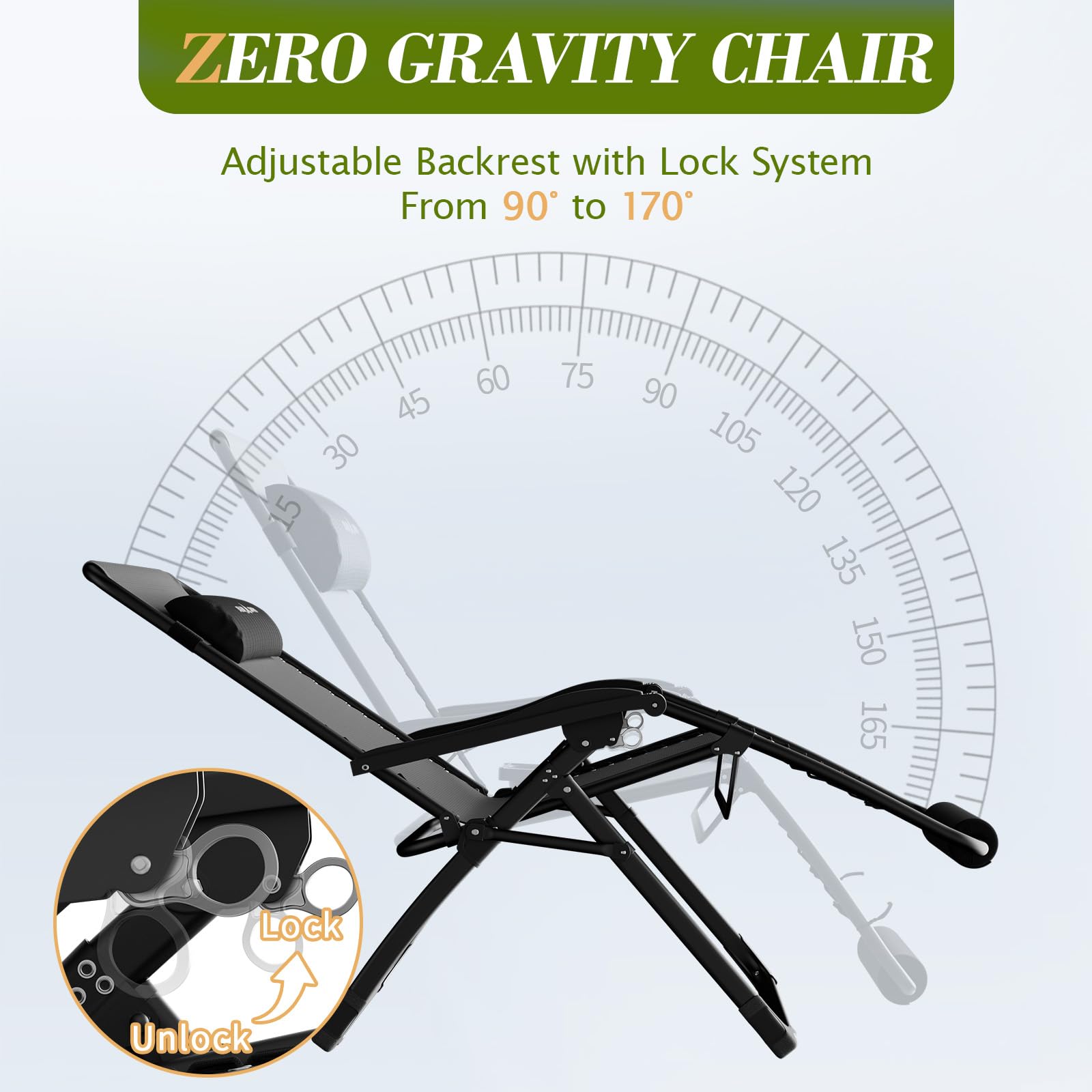 - 【Effortless Adjustment to True Zero Gravity on Your Zero Gravity Recliner】The new-generation aluminum alloy lock revolutionizes your relaxation on our zero gravity recliner. Effortlessly glide the chair from 0° to 170°, finding your sweet spot in seconds. Safety is maximized as the chair hovers up to 20' off the ground, delivering an authentic zero gravity experience. Whether you call it an anti gravity chair or a zero gravity recliner, this chair takes your comfort to new levels.