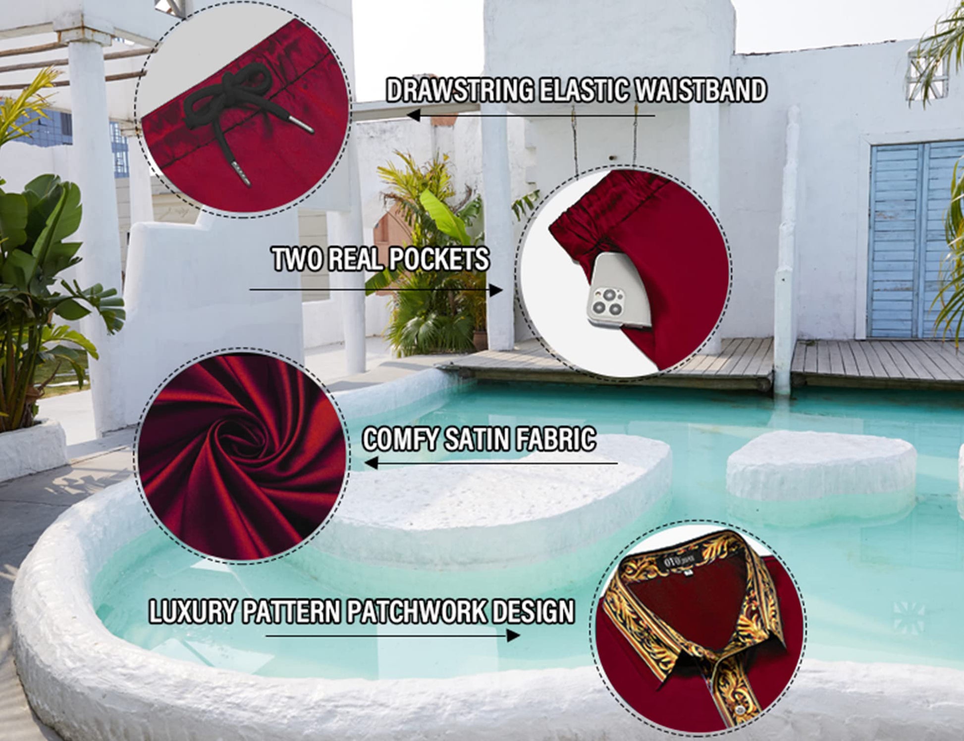 - 【Mens Fashion】Mens Matching Hawaiian Shirt and Shorts Set! The unique satin prints patchwork design creates bright and eye-catching, gentle and generous, young and stylish casual look.