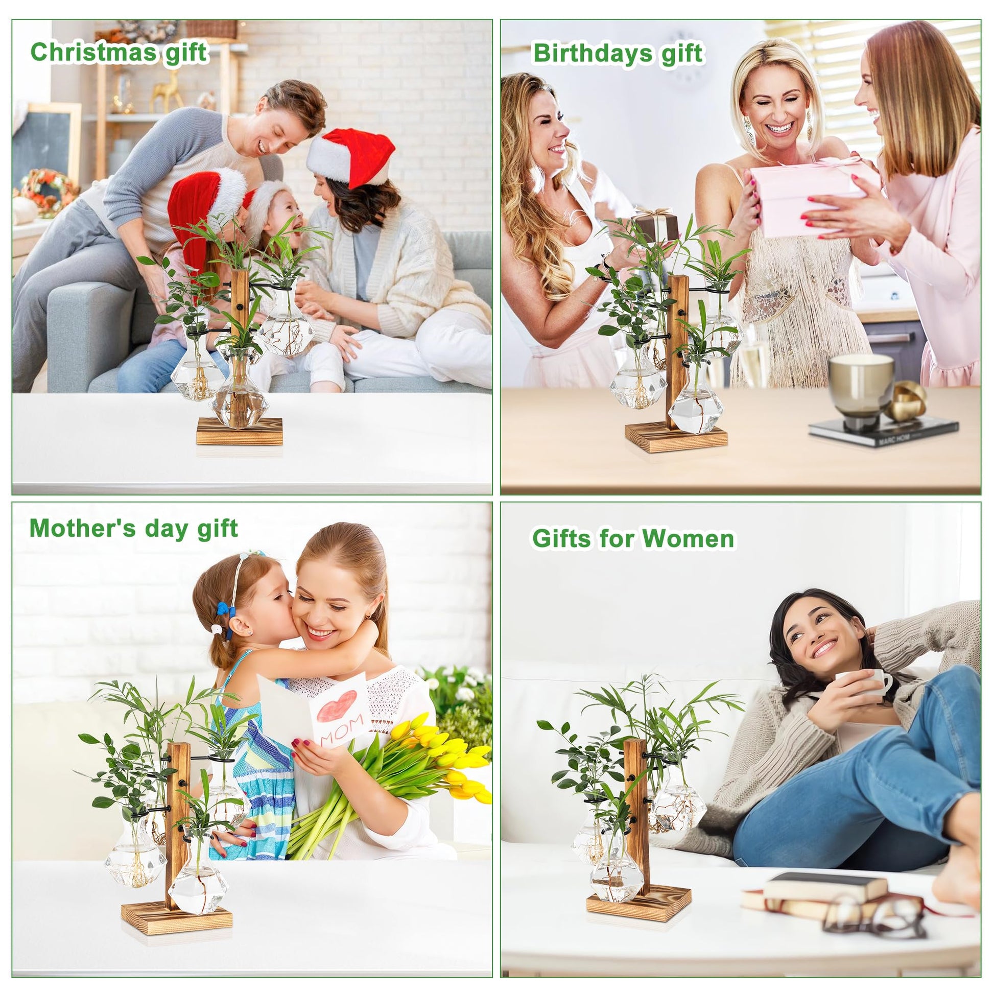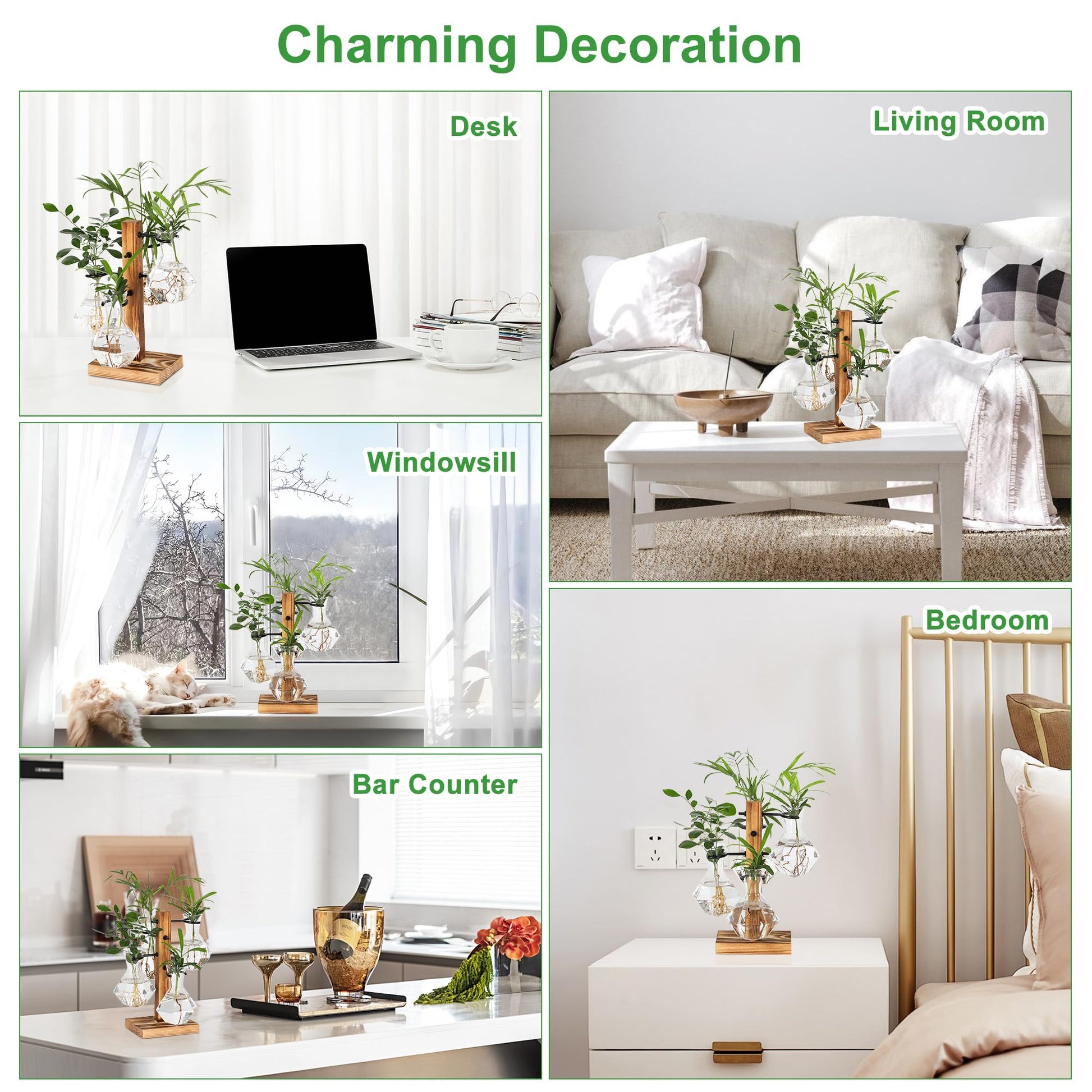- ▶High Quality. The stand of planter terrariums is made of nature pine wood, light but strong. 4 Glass vases are made of high boron silicon heat resistant glass. They are not easily broken