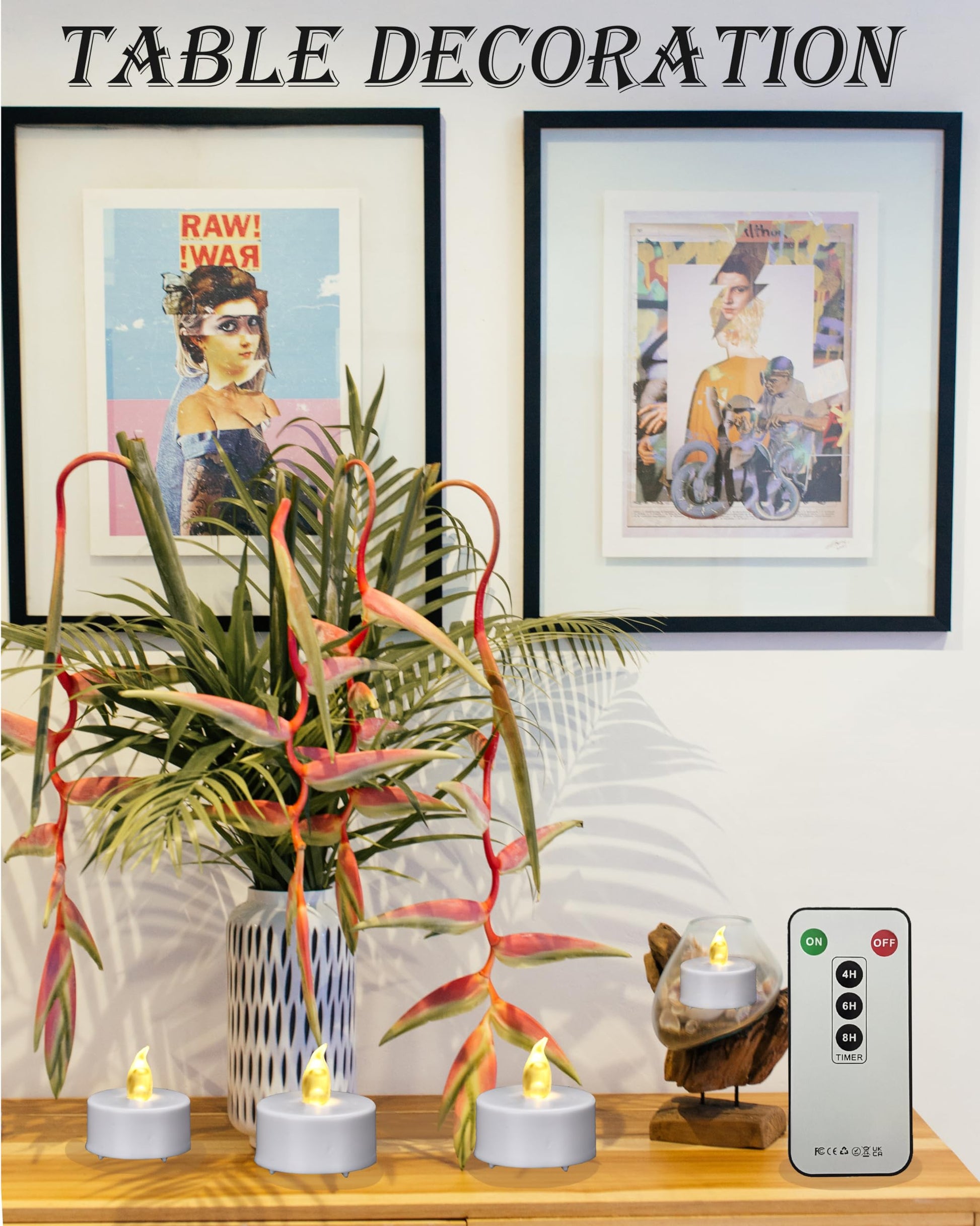 - Safe design: This Remote Control Tea Lights is odorless, smokeless, won't melt and doesn't need to burn. The flickering warm yellow light effect simulates the light source of real wax, making the candle look more realistic