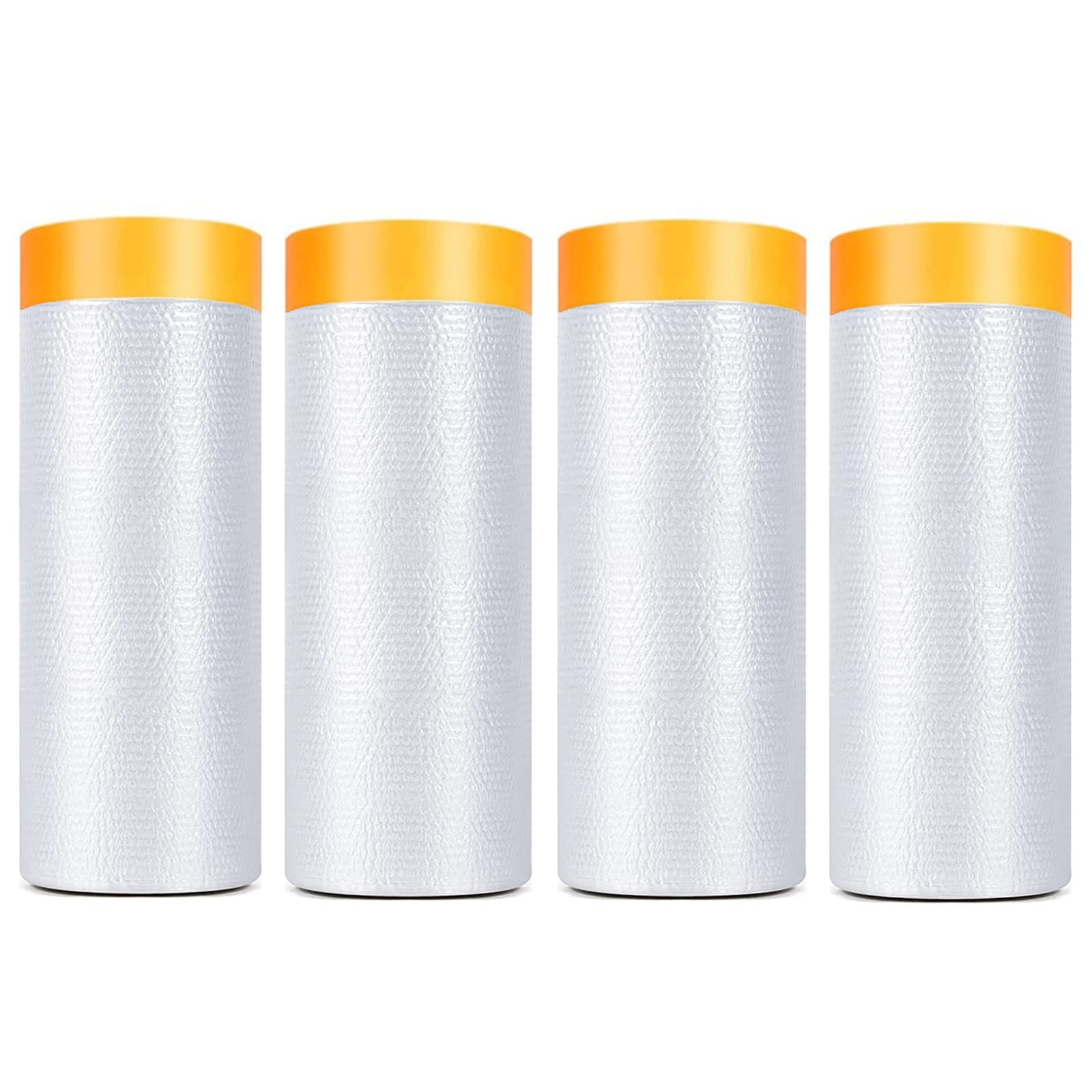 Painters Plastic With Tape, Pre-Taped Masking Film, 4 Rolls Automotive Best Tape and Drape, Paint Adhesive Protective Film Roll for Covering Skirting, Frames, Cars and Auto Body (5 X 65-Feet)