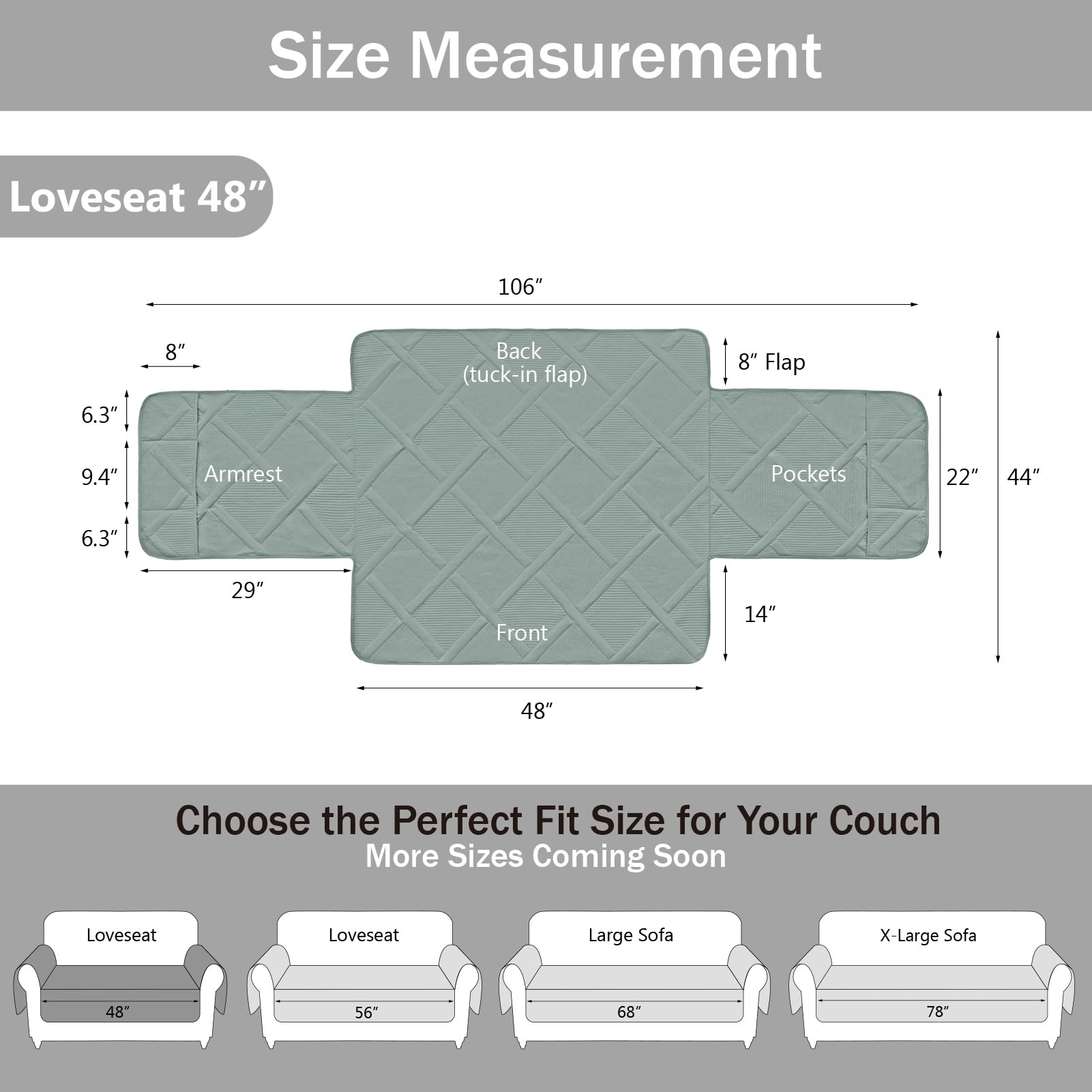 Pamhaven Backless Loveseat Covers for 2 Cushion Couch, Water-Repellent Covers for Leather Sofa Couch, Machine Washable Quilted Couch Covers, Pet Friendly Loveseat Slipcovers (Loveseat 48", Sage Green)