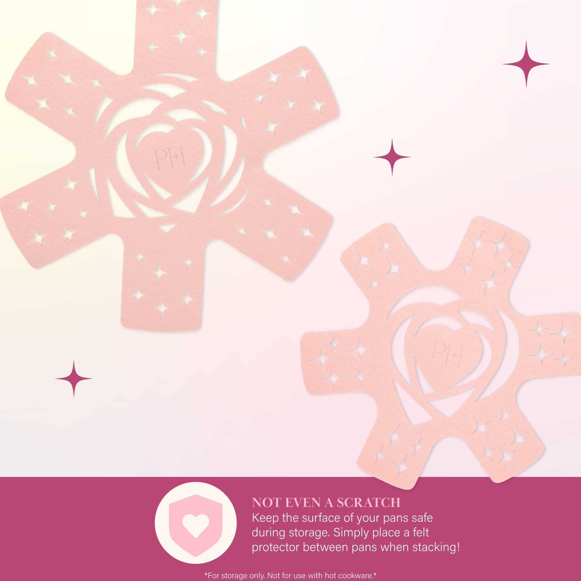 - ICONIC POTS AND PANS SET INCLUDES: 9.5-Inch Fry Pan, 2-Quart Sauce Pan with Lid , 3.5-Quart Saute Pan with Lid, 5-Quart Stock Pot with Lid, and 3 Felt Protectors. Suitable for use with all stove tops: electric, glass, gas and induction. A perfect match for Paris Hilton's kitchen utensil set.