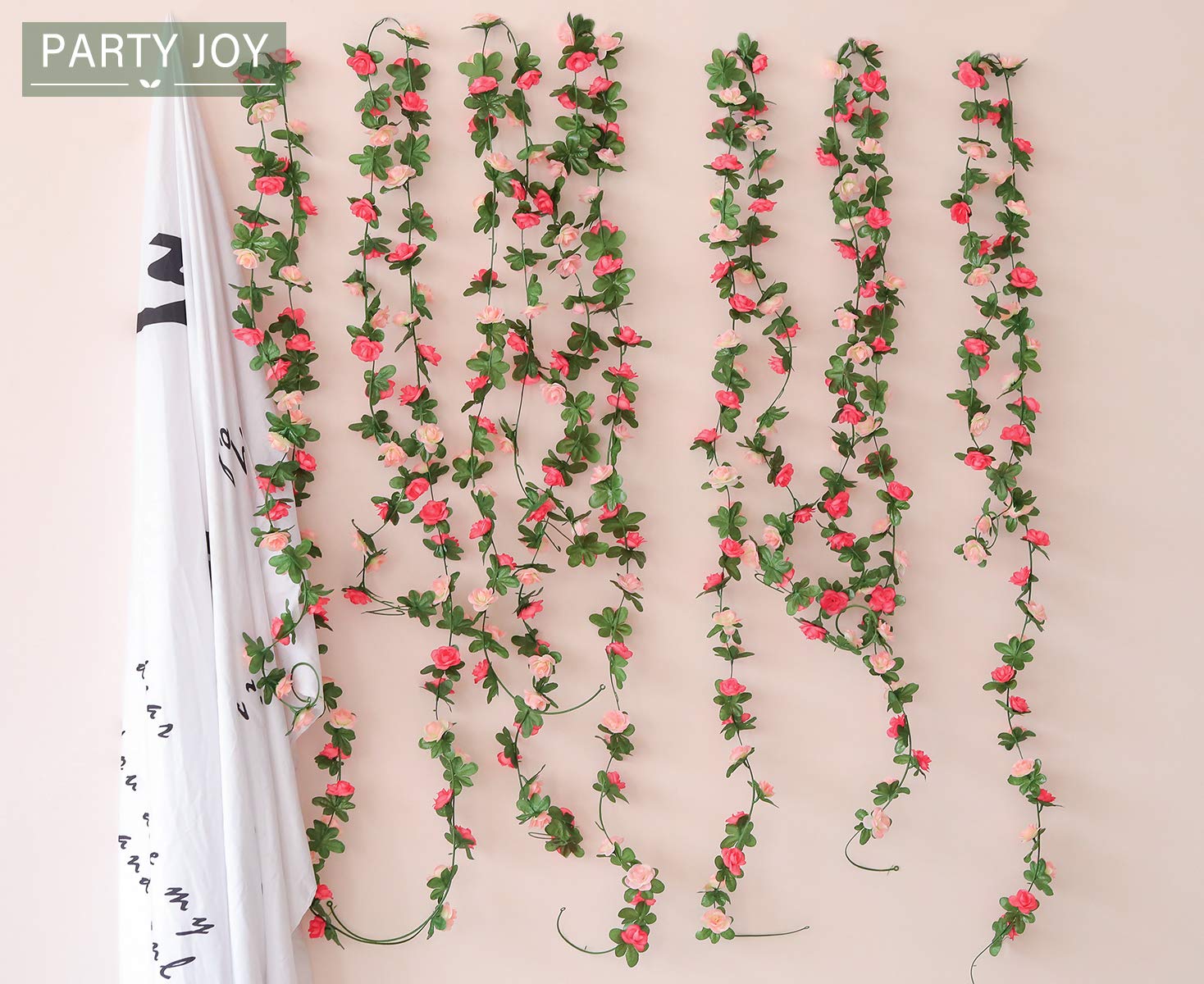 PARTY JOY 5pcs 41Ft Flower Garland Fake Rose Vine Artificial Flowers Hanging Rose Ivy Hanging Baskets Wedding Arch Garden Background Decor (Pink, 5)