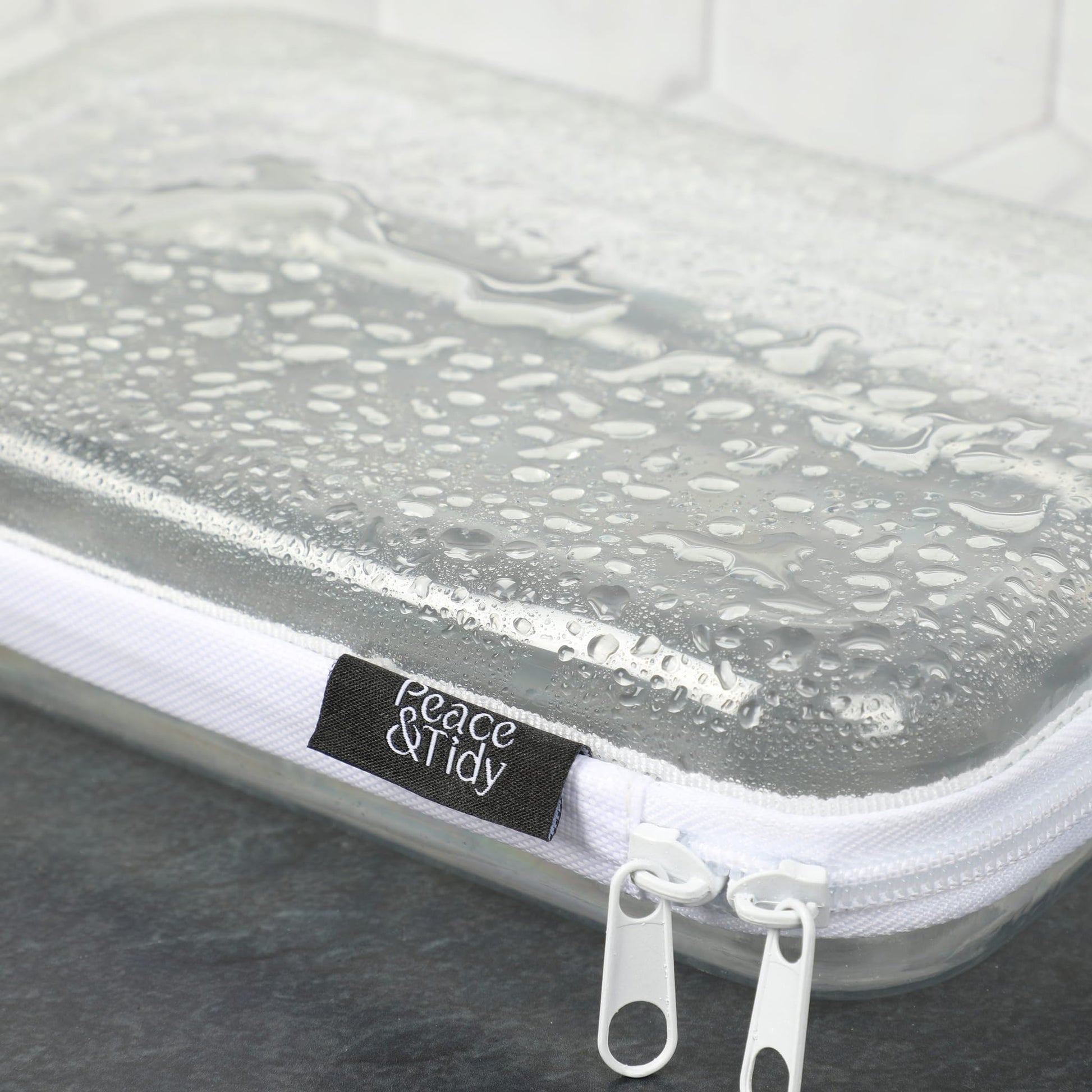 Details: {Professional-Grade Storage Solution for a Clutter-Free Home} The Peace & Tidy Clear Zippered Storage Bin is a must-have for those who value organization, durability, and style. Perfectly sized at 5.5' x 8.5', this hard-sided, professional-grade bin is designed to simplify your life while keeping your belongings neatly stored and easily accessible. Whether you need a versatile storage solution for toys, craft supplies, pantry essentials, makeup brushes, or seasonal items, this bin offers the functionality and quality you’ve been searching for. The stackable design maximizes storage space, while the durable zipper closure keeps everything secure, dust-free, and protected from moisture. {Why Peace & Tidy is Your Ideal Choice} Durable, Hard-Sided Design: Crafted from high-quality materials to maintain its shape and offer long-lasting use. Crystal Clear for Easy Viewing: Transparent construction lets you see exactly what’s inside, making organization effortless. Stackable & Space-Saving: Designed to stack securely, these bins make the most of any space in your home or office. Protective Zipper Closure: Safeguard your items from dust, spills, and moisture with a secure, professional-grade zipper. Multi-Purpose Versatility: Ideal for organizing toys, art supplies, pantry items, or anything else in need of tidy storage. {Features You’ll Love} Size: 5.5' x 8.5' x 2' – perfect for a wide range of storage needs. Professional-Grade Quality: Built to withstand daily use, keeping your items safe and secure. Modern Aesthetic: The sleek, clear design complements any decor style. Easy to Maintain: Simply wipe with a damp cloth for a fresh, clean look. {Designed for Busy Moms and Organizing Enthusiasts} At Peace & Tidy, we understand the challenges of keeping a busy household organized. That’s why we’ve designed a storage solution that meets the highest standards of quality and functionality. Not only can you finally keep crackers in your diaper bags without crushing them, you'll find uses from playrooms to kitchens to the office, and more. These bins simplify your life, giving you the peace of mind you deserve. These storage containers will off you bliss; bins can be used as a set as they are stackable. Or, they work quite well as individual storage pieces to keep things separate. They are food safe and can be used to keep kids' snacks from getting crushed in bags.