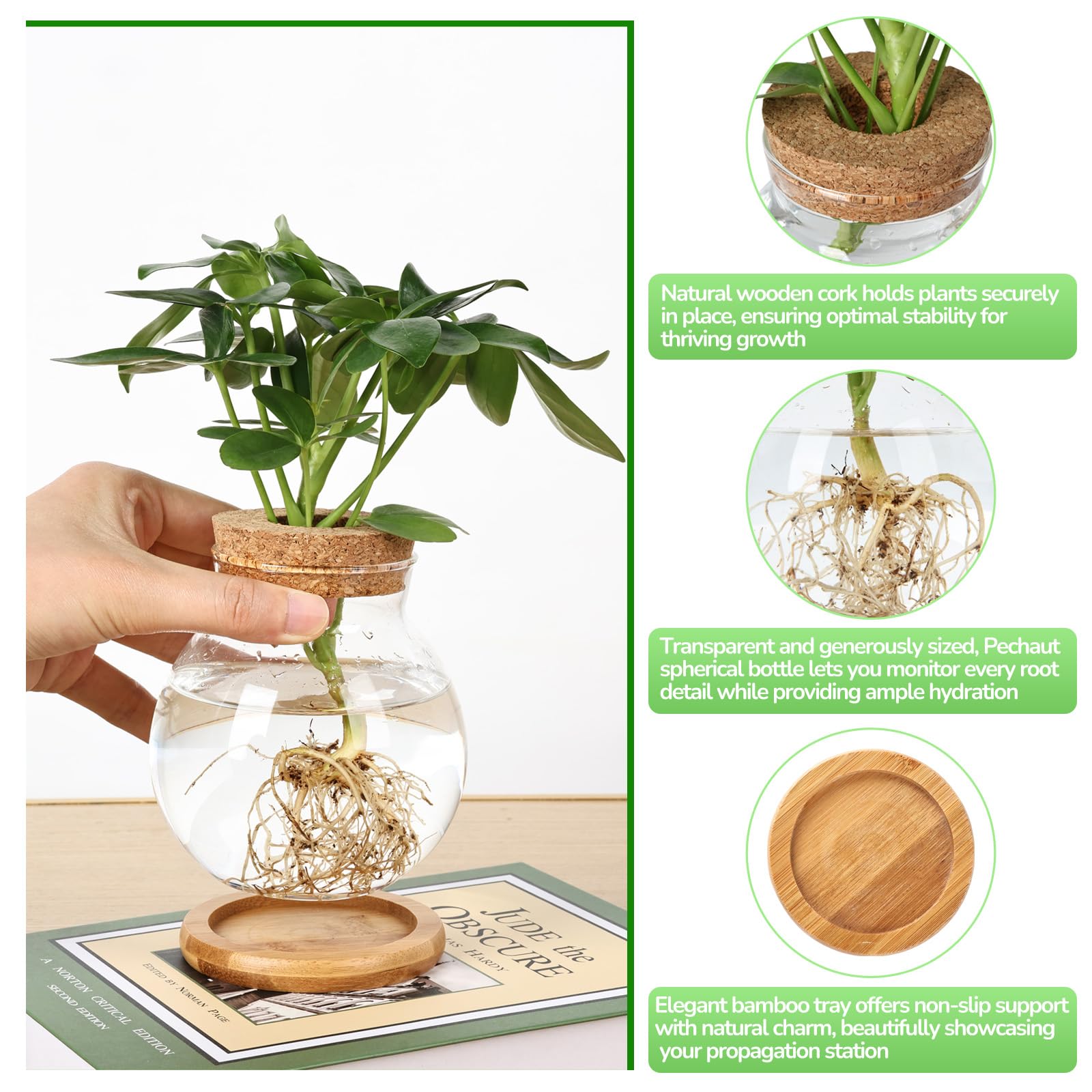 - Spacious Glass Planter: Large capacity propagation station designed to hold more plants; provides ample root growth space for healthy water-rooted plants