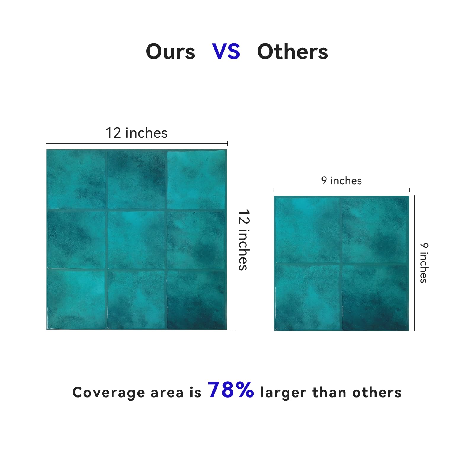 Peel and Stick Backsplash Tiles, 10 Sheets Blue Costa Faux Spanish Handmade Tile for Kitchen, Bathroom, Wall Tile (12" × 12")