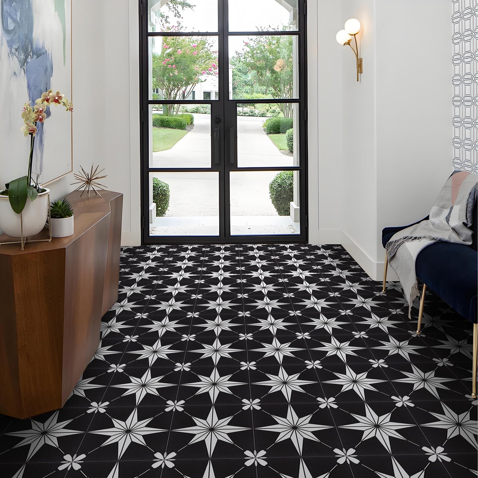 Peel and Stick Floor Tile Self Adhesive Waterproof 8" x 8" Vinyl Flooring, Removable Floor Stickers DIY for Bathrooms,Kitchen,Living Room,Black 10Pcs
